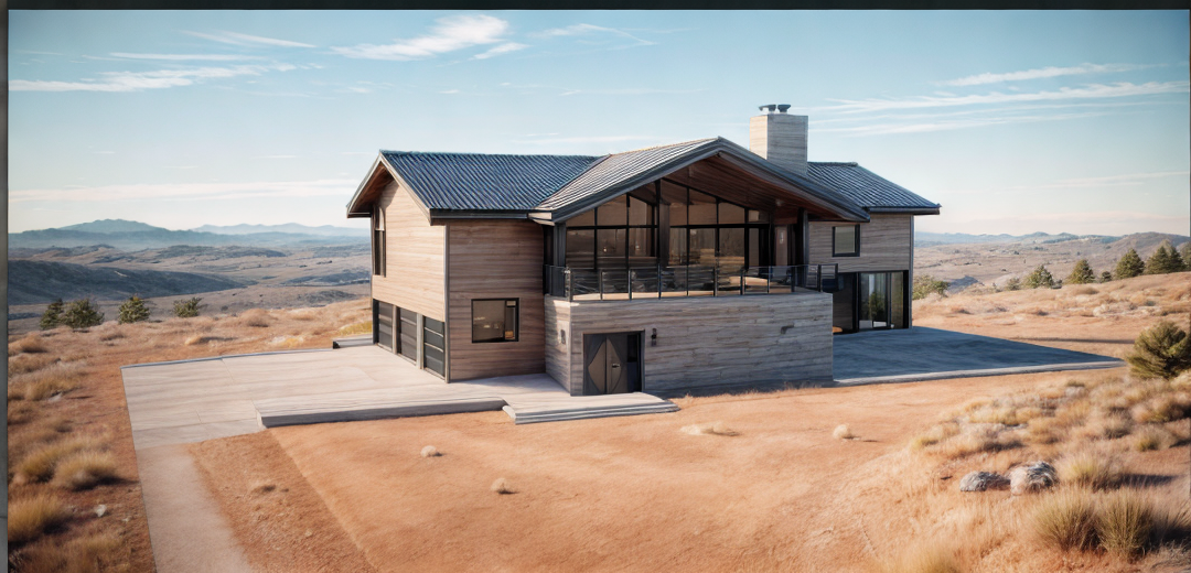 exterior shot generate a new 3d perspective of the same model shown in the reference image keep the same materials lighting render style and atmosphere as the reference do not change or redesign any elements maintain the existing form doors windows pavement roof and materials exactly as they are only adjust the camera position to show a different angle of the same model for example a rear or side view the output should look identical in style and quality to the reference rendering only the perspective should change
