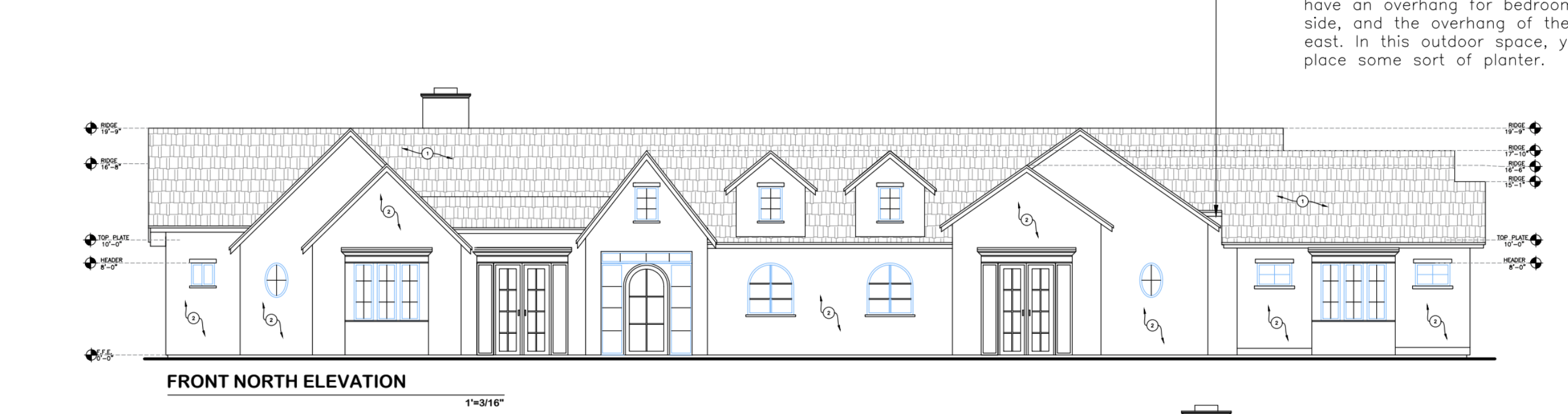 creme white paint with black roof and black framed windows with a front courtyard and green grass in the front yard