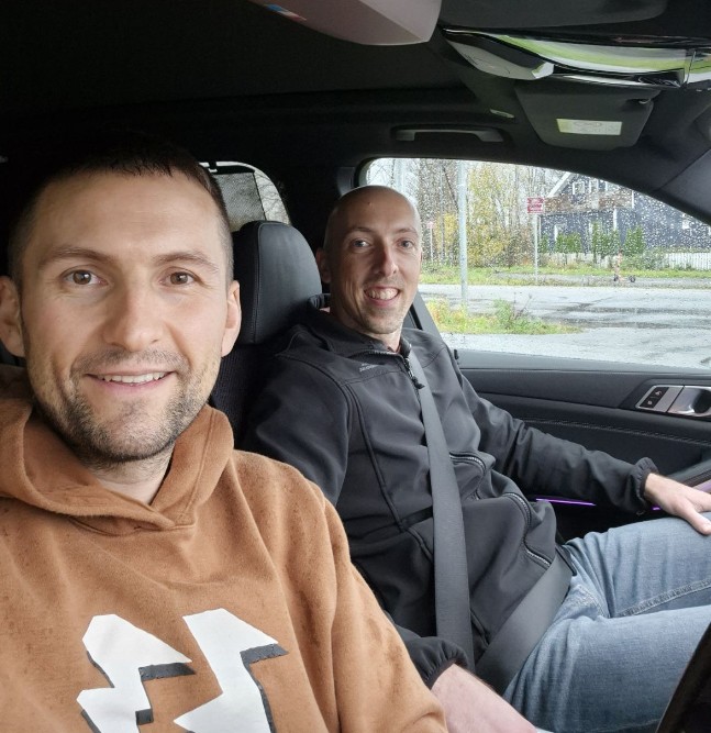 a man with a beard in an orange hoodie dribbling a basketball on a court