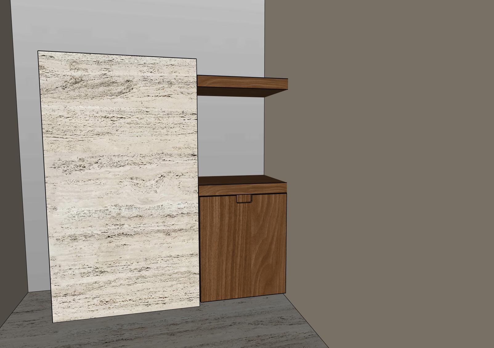 make it photo realistic the left wall behind the furniture is one large mirror