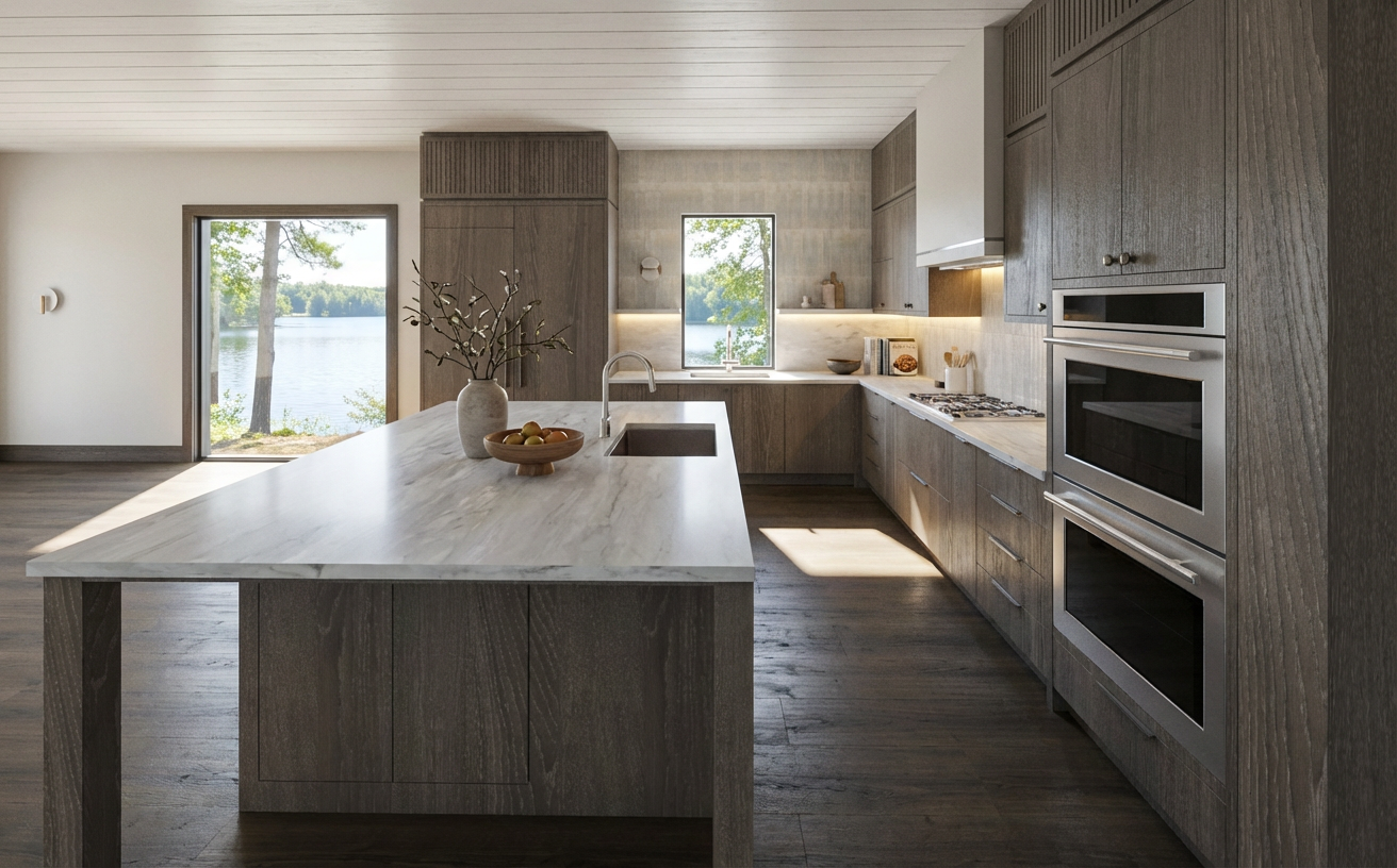 scurisci legno arredo fisso pi scuro il resto invariato iperrealistico
