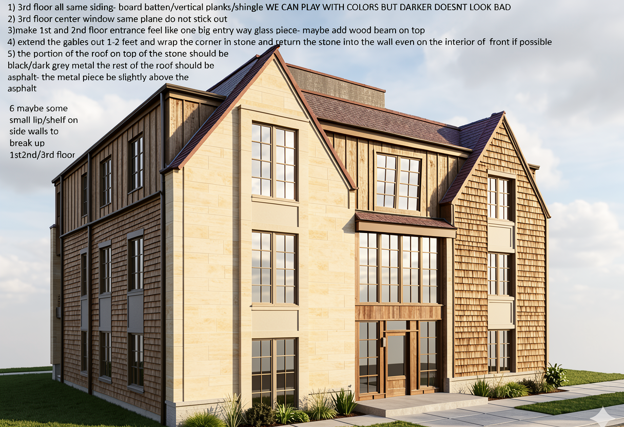 make the 2 front gables all limestone