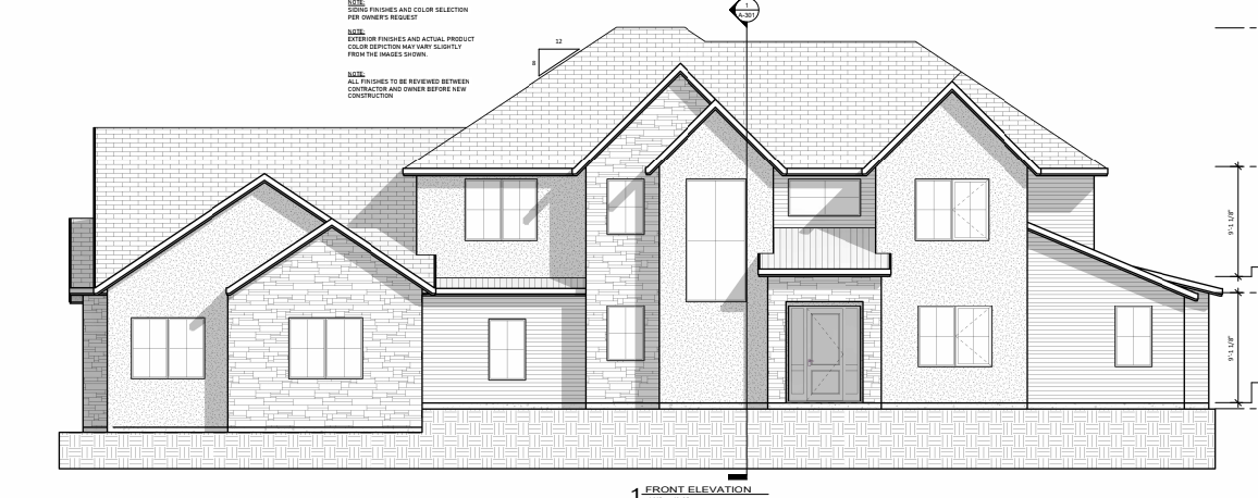 maintain locations of materials as specified on the elevation stucco and siding color is swiss coffee by benjamin moore stone is casablanca by el dorado stone all trim and fasica is white metal roof is by drexel metals in color champagne shingle roof is the same color as the metal roof