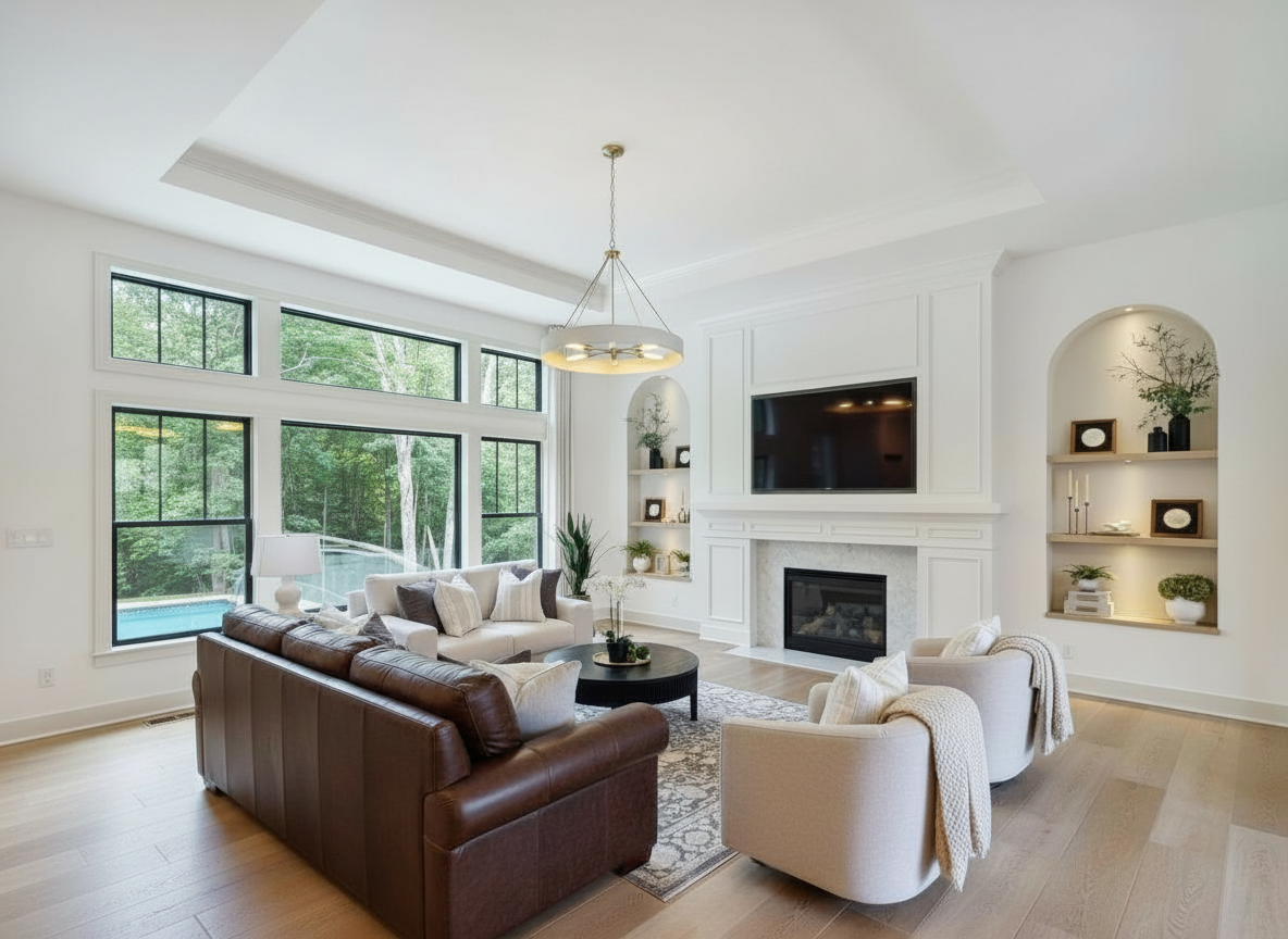 preserve the exact cabinet layout dimensions proportions door styles hardware placement and all architectural features do not change the design geometry colors materials or lighting direction only enhance clarity edges smoothness shadows and subtle realism while keeping the original look completely unchanged clean up the dust and items on the floor do not alter or change anything about the cabinet color remove everything on the floor and countertops put a washer and dryer below the upper cabinets add a faucet to the sink close the cabinet doors