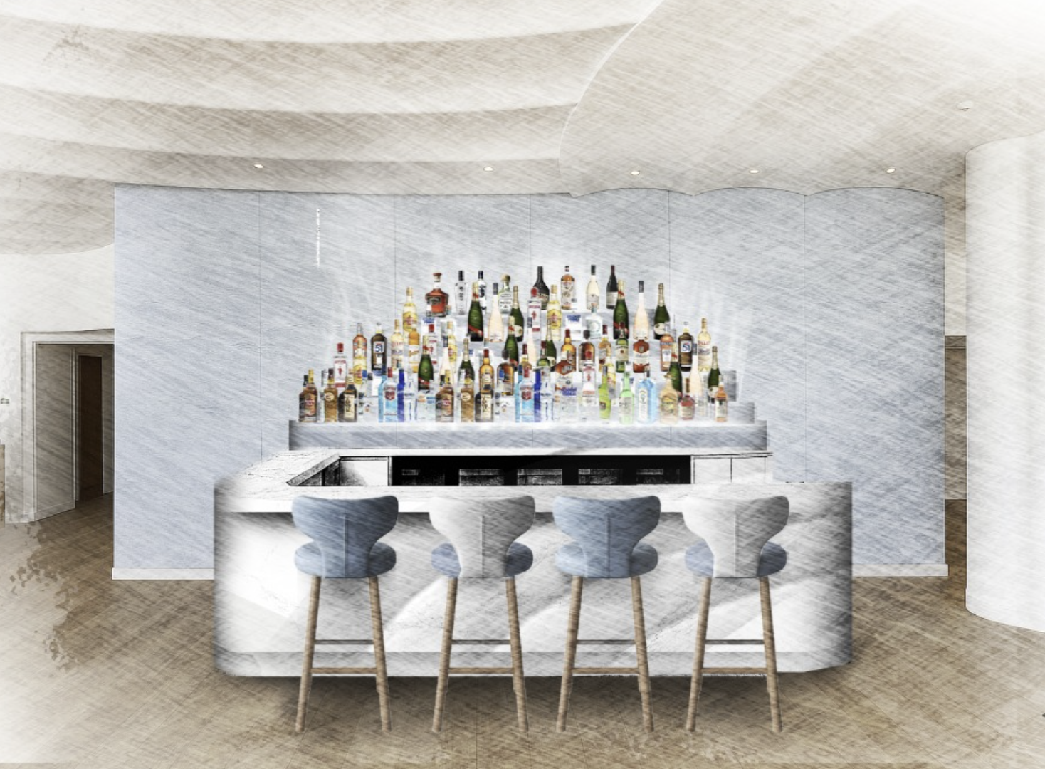 make this bar photorealistic with some sunlight coming frm the left this is a miedetraena space majje the whole image feel quite light