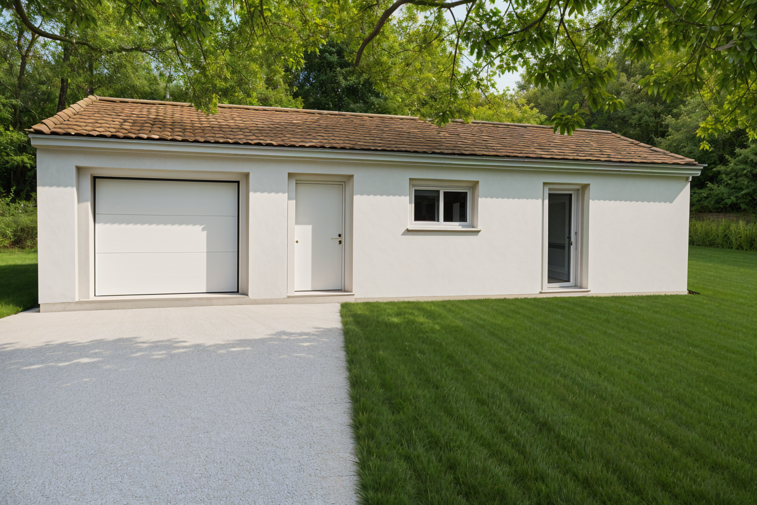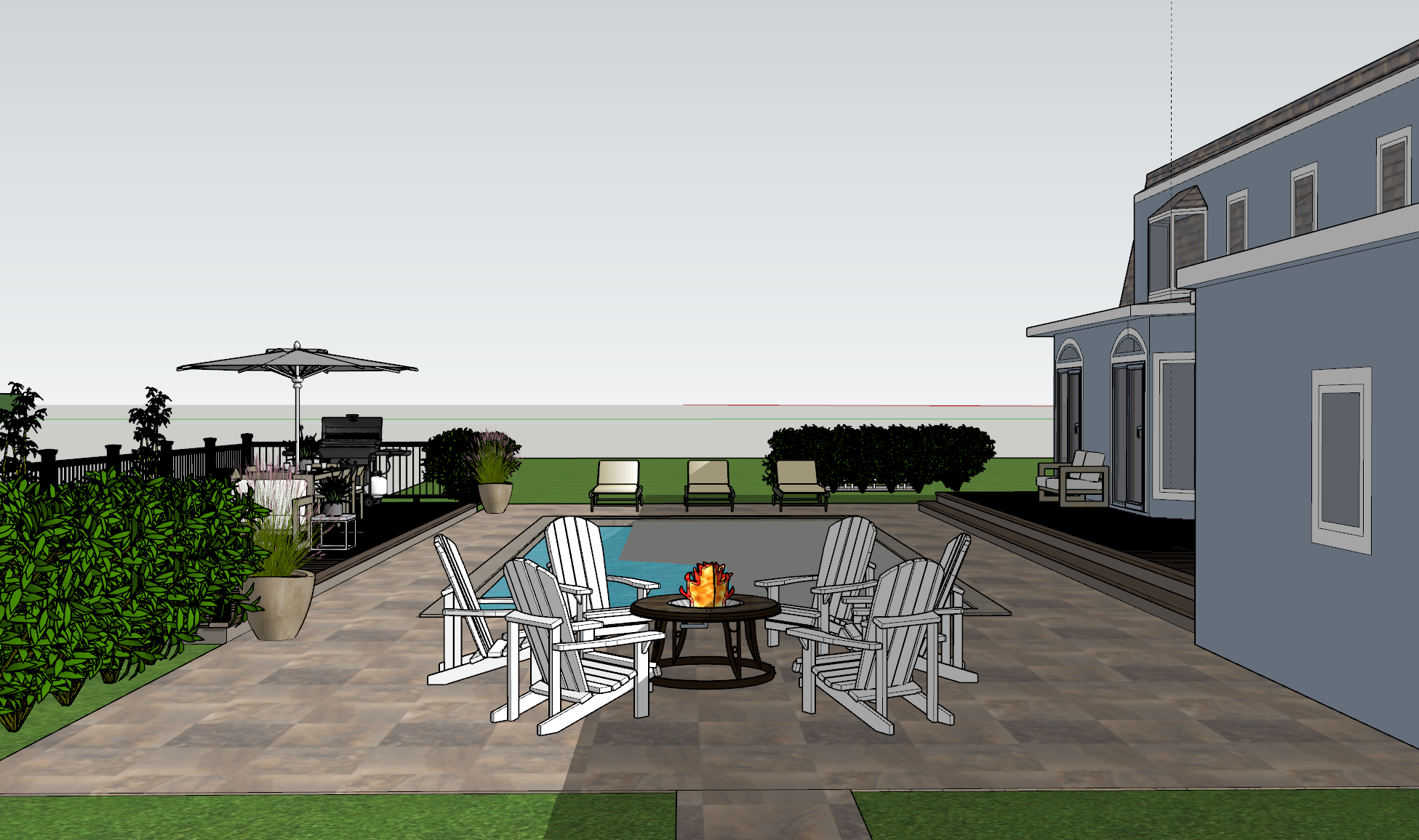 suburban area tree background with side of house in background all decking to be composite paver patio stucco house