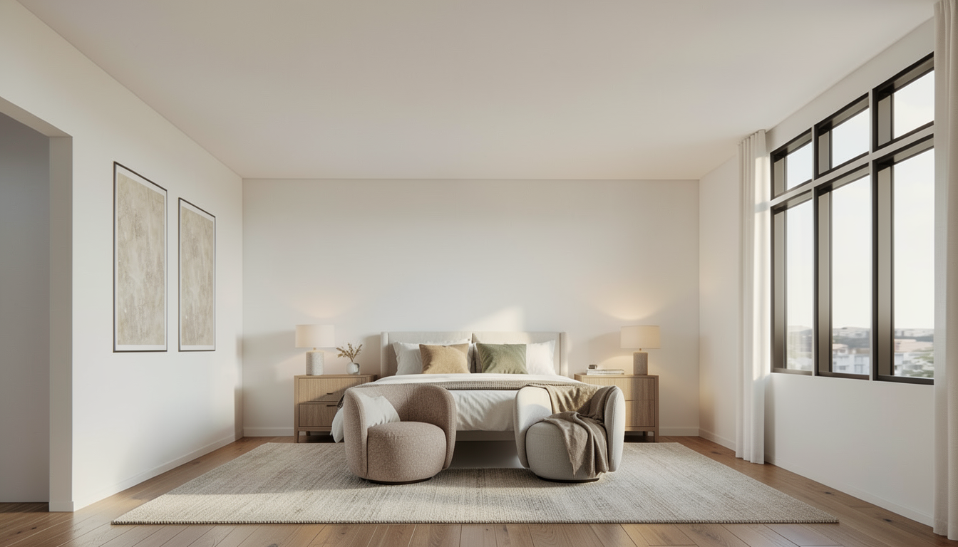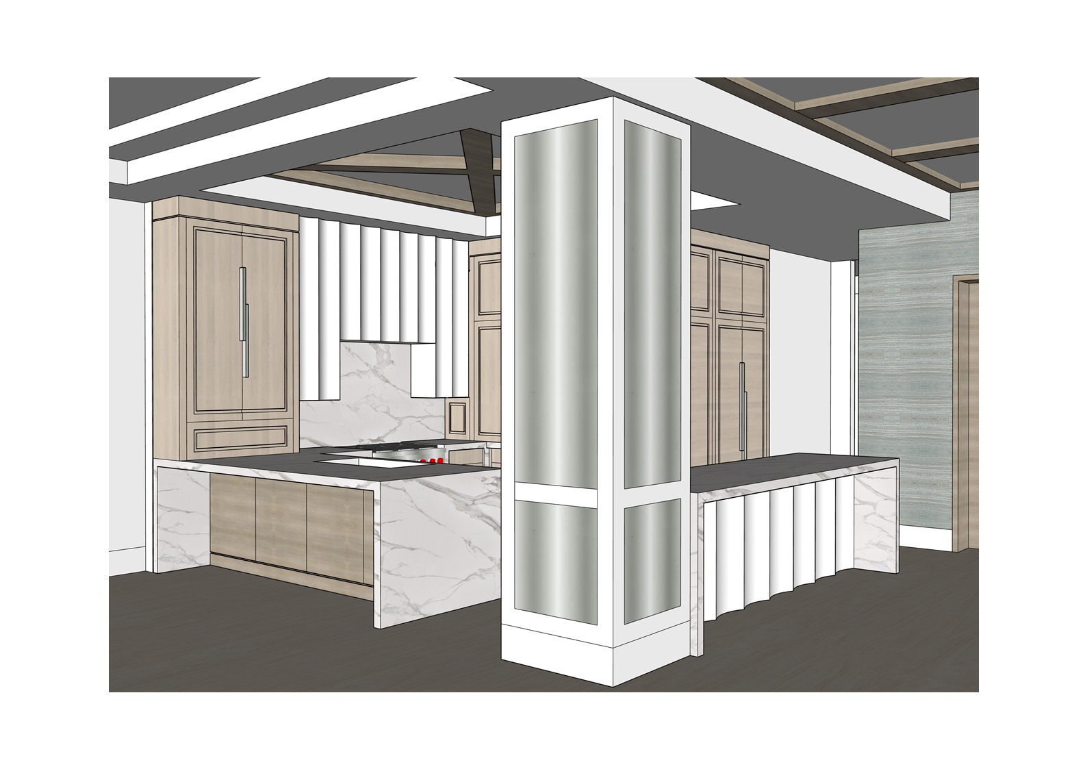 transform the provided elevation into a hyper realistic interior photograph that is indistinguishable from a real professionally shot interior design photograph this must read as a real space captured by a camera not a rendering not a visualization not architectural cg not concept art and not an illustration geometry lock non negotiable preserve the exact original geometry layout proportions ceiling details wall depths panel divisions openings doors cabinetry locations millwork dimensions built ins and circulation paths with zero architectural changes nothing may move scale simplify or be reinterpreted geometry must remain absolutely unchanged camera derivation critical derive the camera position height angle and framing strictly from the uploaded elevation eye level interior photography centered or naturally balanced composition 24 35mm interior lens feel no dramatic angles no stylized framing do not reuse or approximate camera framing from any previous image remove all drawing artifacts completely remove all linework cad edges drafting outlines diagrammatic shapes sketch artifacts nothing may appear outlined flat schematic or illustrative the elevation must be visually reinterpreted as a finished real interior photograph material realism rules wood if present smooth solid plank material extremely subtle restrained grain matte or soft satin finish only no graphic patterns no decorative striping no visual noise wood must absorb light gently never glossy or sharp fabric upholstery if present soft compression subtle seams gentle shadowing natural fabric texture no flat color blocks stone slabs if present light natural veining soft organic variation low contrast no symmetry no bold or busy patterns stone must feel heavy and grounded walls fine surface texture slight tonal variation never flat paint edge construction realism all edges corners joints and transitions must be softly broken and physically realistic no razor sharp corners no cgi perfect edges slight construction tolerances only everything must read as fabricated installed and dimensional lighting photographic behavior lighting must behave like real high end interior photography natural daylight only unless otherwise specified realistic light bounce gentle shadow falloff uneven exposure distribution subtle brightness variation across surfaces avoid studio lighting uniform illumination over clean exposure global illumination look slight softness is preferred over sharpness camera image imperfections very important introduce subtle photographic characteristics gentle lens softness micro exposure variation natural contrast roll off mild atmospheric depth primary plane sharp background slightly softer the image must feel captured not generated absolute constraints no creative interpretation no stylization no exaggeration no added or removed elements any deviation from the original elevation geometry or intent is unacceptable negative prompt always include architectural rendering 3d visualization cgi unreal engine octane vray sketchup look flat textures graphic lines outlined edges over sharpened studio lighting concept art illustration ai look plastic materials glossy wood high contrast grain perfect symmetry keep design as shown in the picture keep the design as it is in image light cabinets are white and brown cabinets are white oak keep design in the image as it is