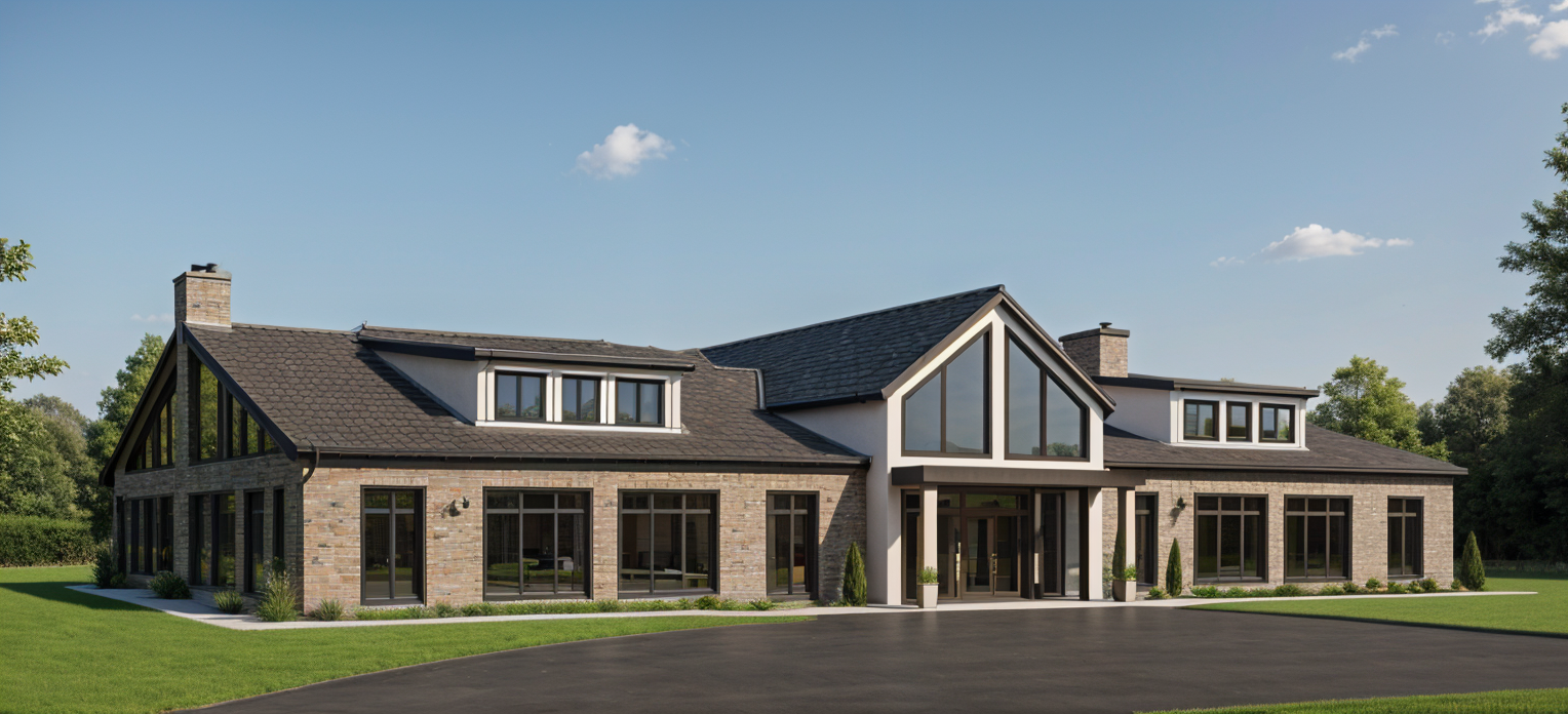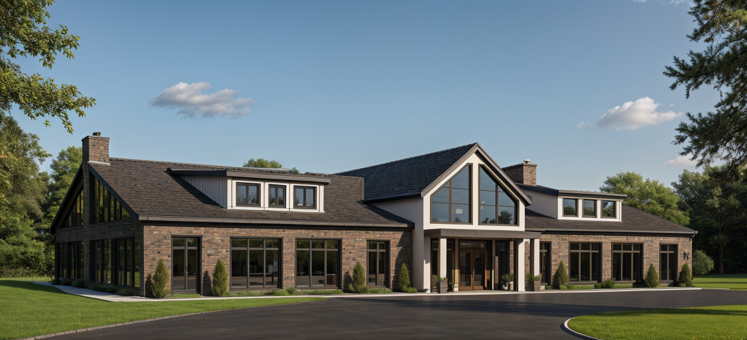 blackish purple brick hoime black frames black trim charcoal grey stucco chiment tv above mantel with soccer games