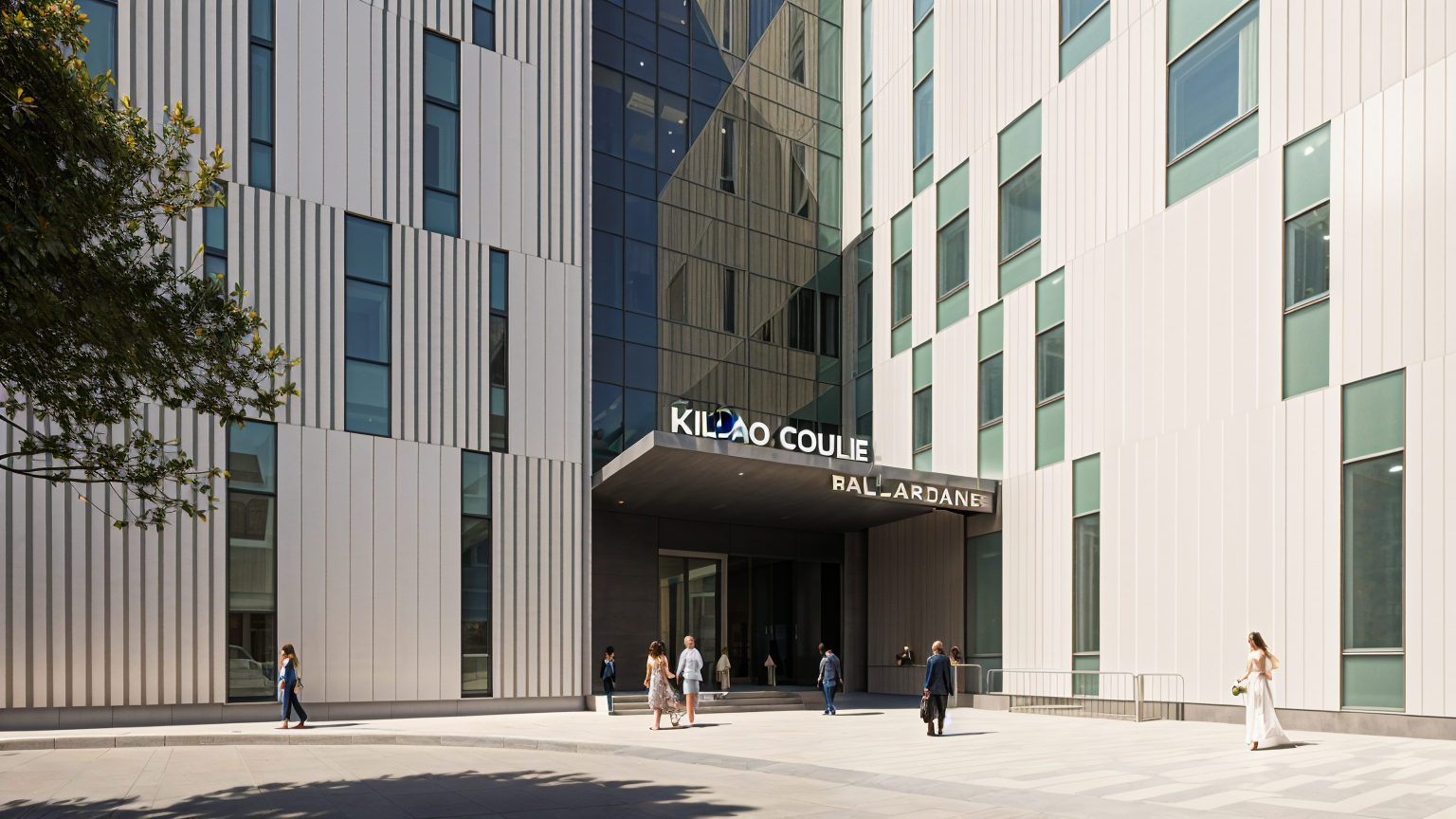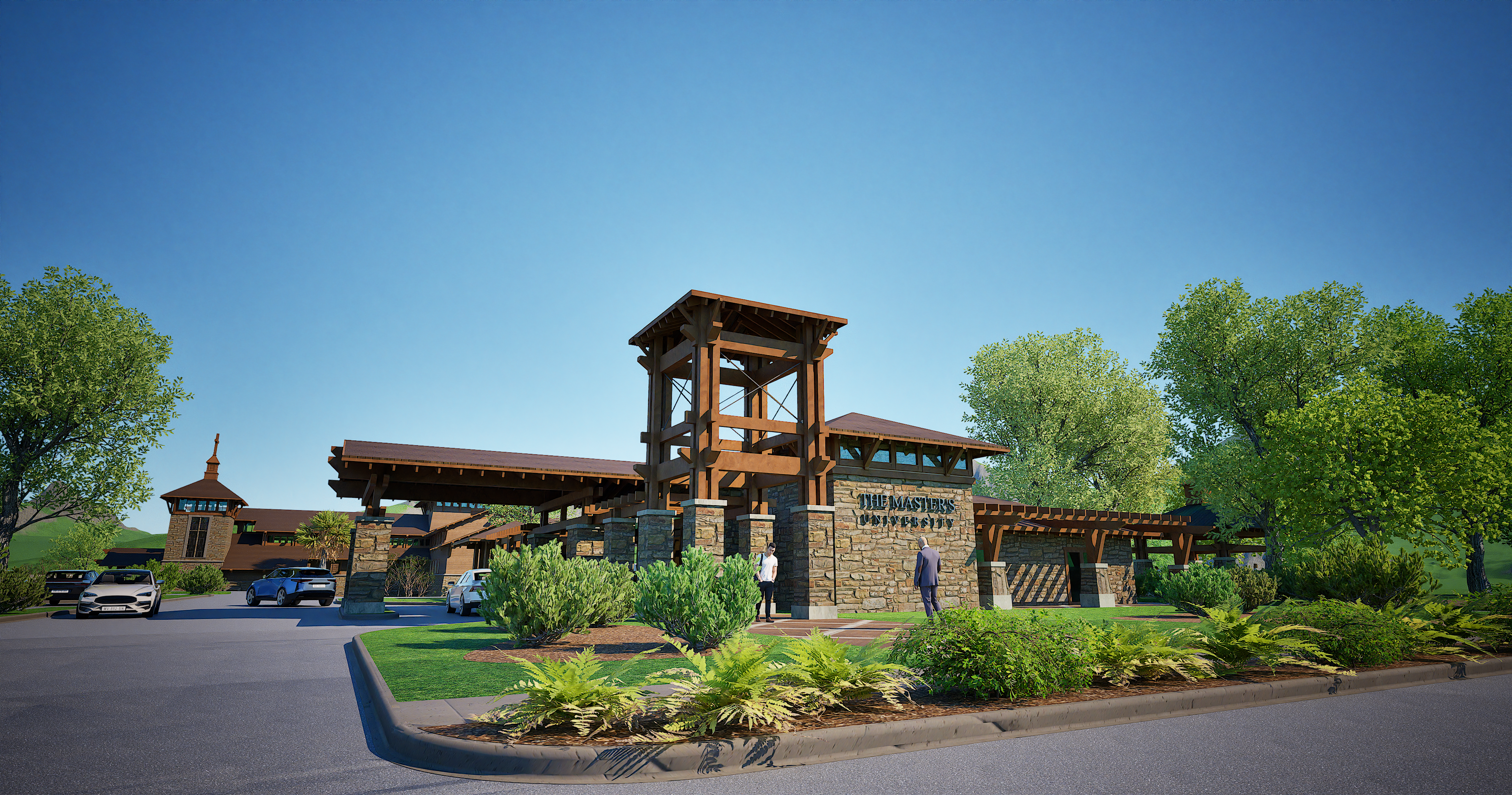 turn into a photorealistic image with 3d metal sign the masters university with native california landscape
