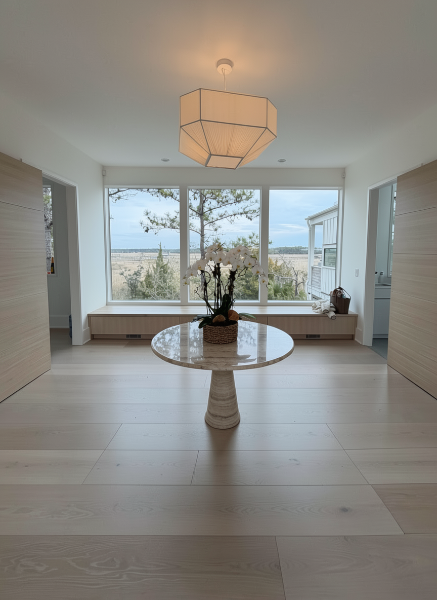 add small greenery in pot on kitchen counter