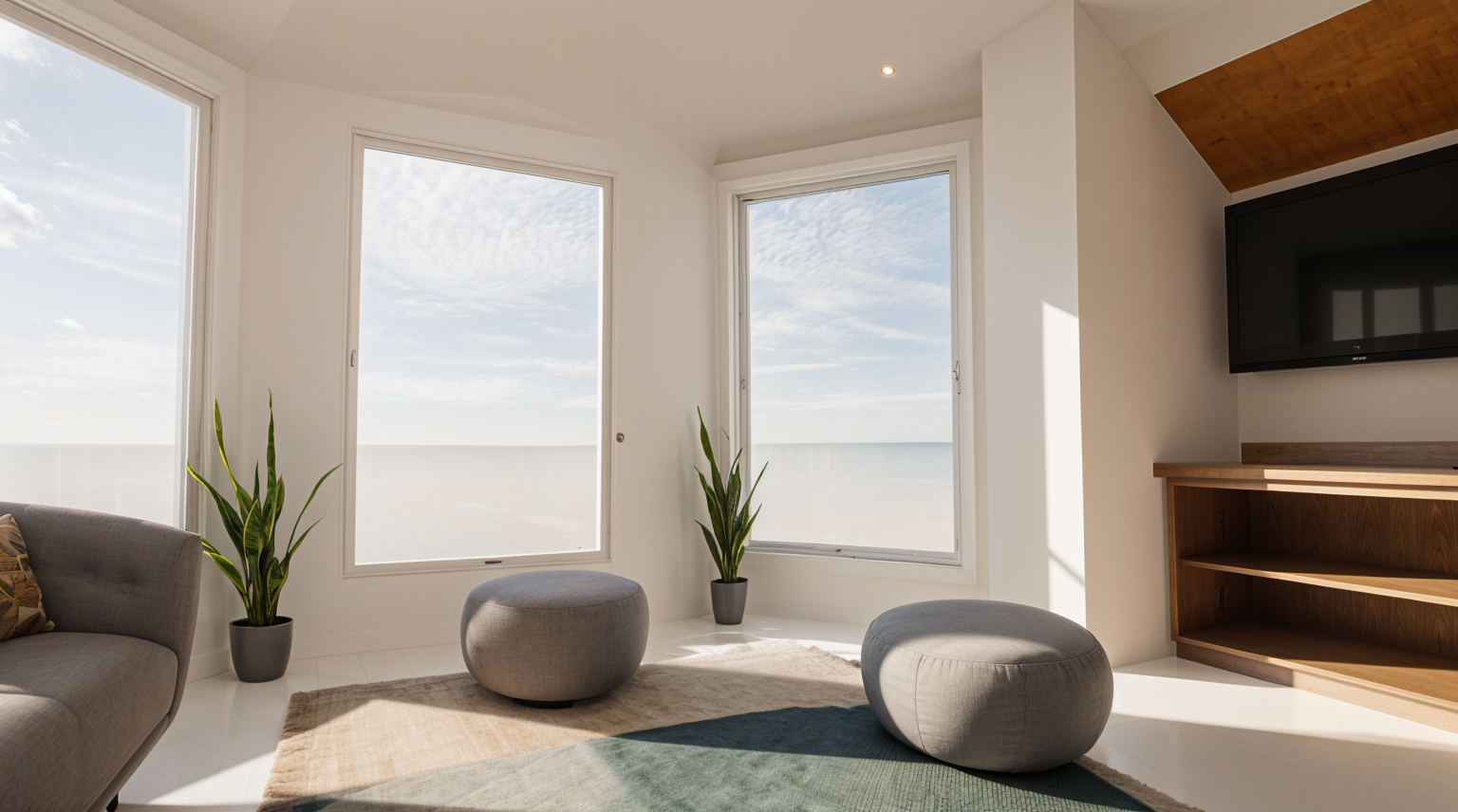 clean architectural exterior rendered in cinematic daylight lighting vertical cedar board batten wood siding on the top floor with horizontal cedar wood tongue groove siding on the lower floor cedar barn doors with black trim black metal standing seam roof high desert environment with light gravel in the foreground and bend oregon vegetation background clouds in the sky cinematic environment natural wood textures high fidelity photorealistic visualization crisp shadow falloff refined facade geometry richly detailed grain patterns soft atmospheric depth premium architectural photography mood ultra clean composition and materials