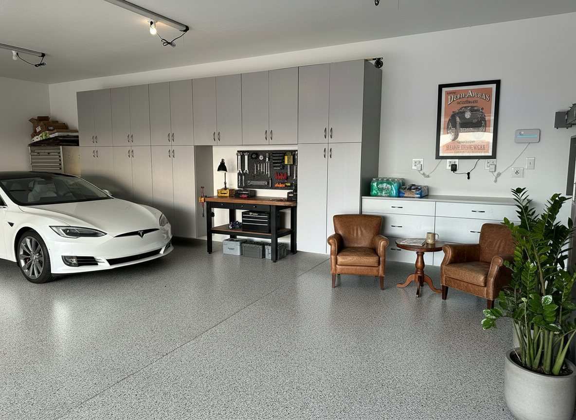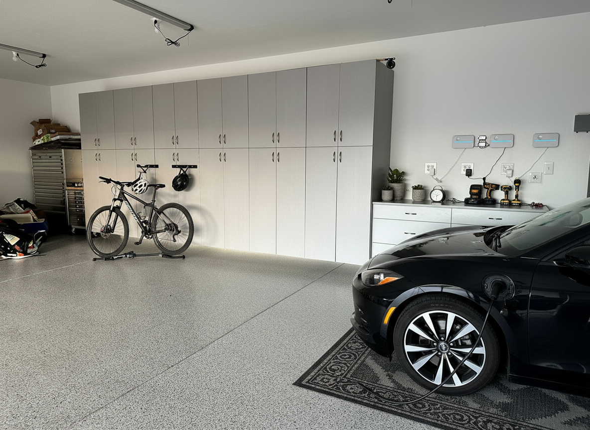 do not modify or change the cabinets stage this garage for a showing get rid of the electrical outlets on the wall and replace with wall mounted baskets full of sports equipment