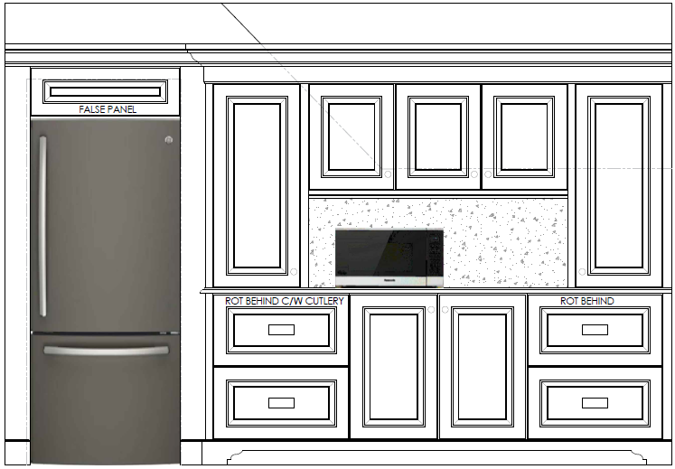 walnut cabinetry sage green wall color white marble countertop backsplash cream grey stone 12x12 floor tile