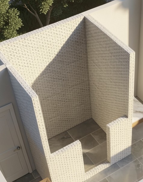 add clear shower glass to short walls and a clear glass shower door in the middle added a gold shower valve and shower head on right shower wall