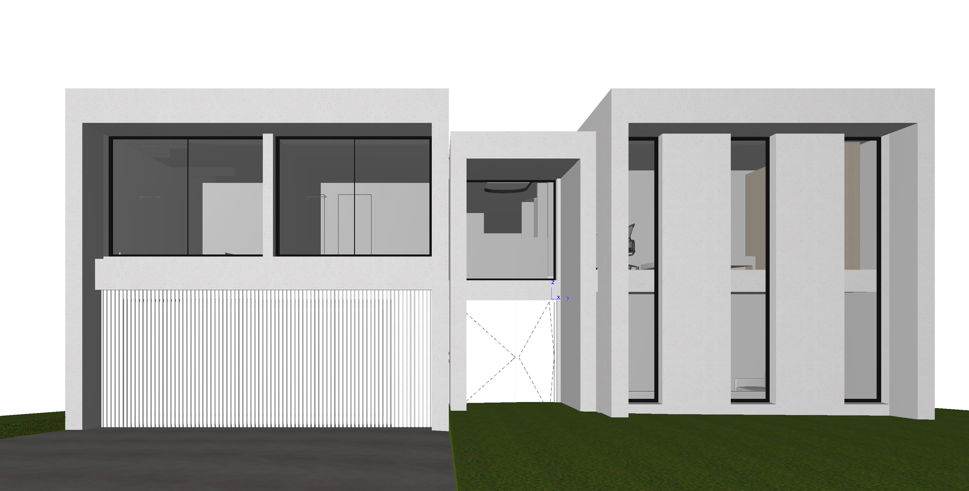 exterior shot create a photo realistic render offwhite venetian rendered walls black aluminium window frames black timber vertical batten garage door and entry door landscaping using white sandstone limestone below 3 windows on right side herringbon cobble stone paving to driveway and path to entry light grey colour