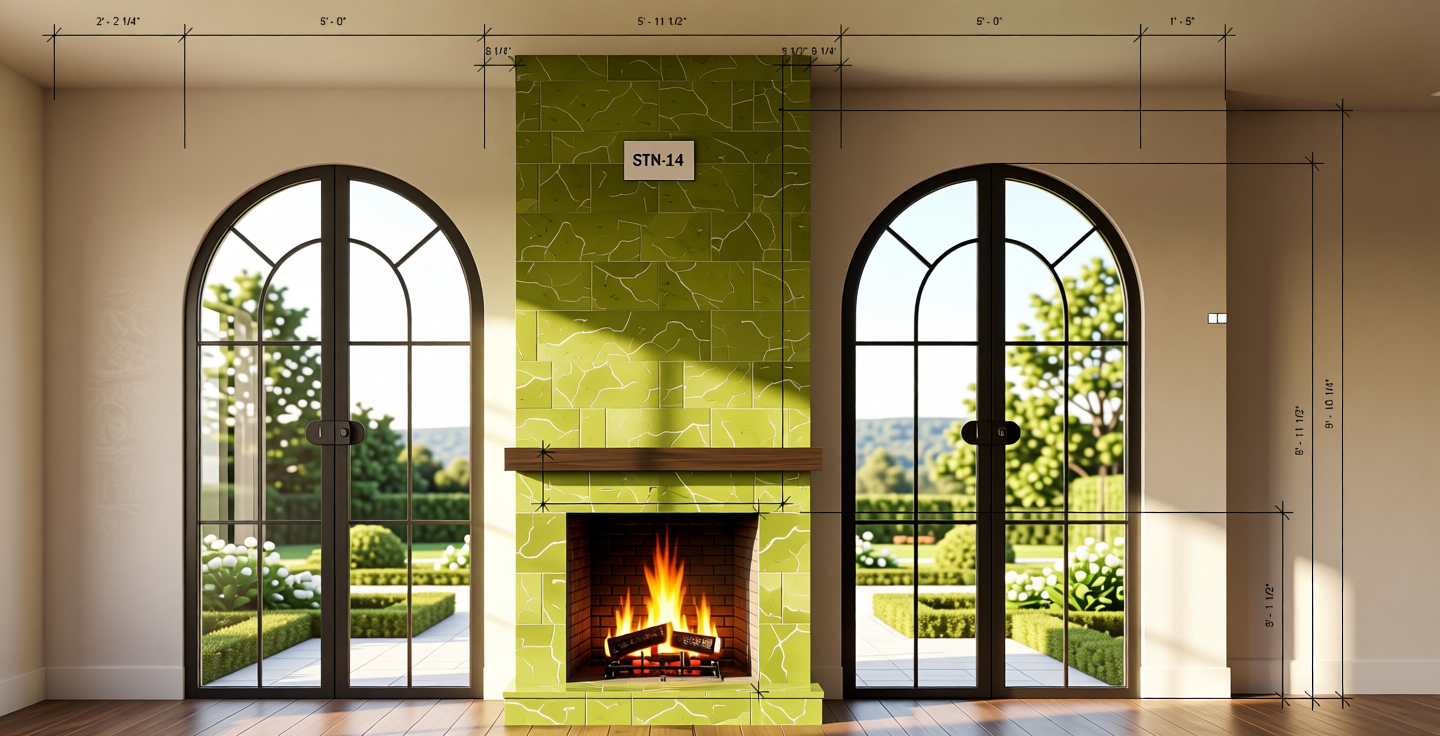 render a modern elegant house with a combination of textures and materials base the design on the blueprint layout provided use light grey brickwork for the main structure and natural stone textures for accent walls incorporate navy blue window trims and door frames the roof should be a contrasting slate grey add a warm inviting light coming from the windows suggesting an early evening setting surround the house with lush green grass and subtle landscaping in the front the overall atmosphere should exude warmth and sophistication