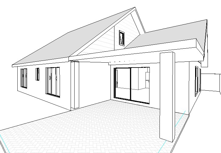 this house has rendered plaste work and weatherboard on the first floor charcoal trimdeck roof sheeting double glass sliding door leading onto the covered alfresco