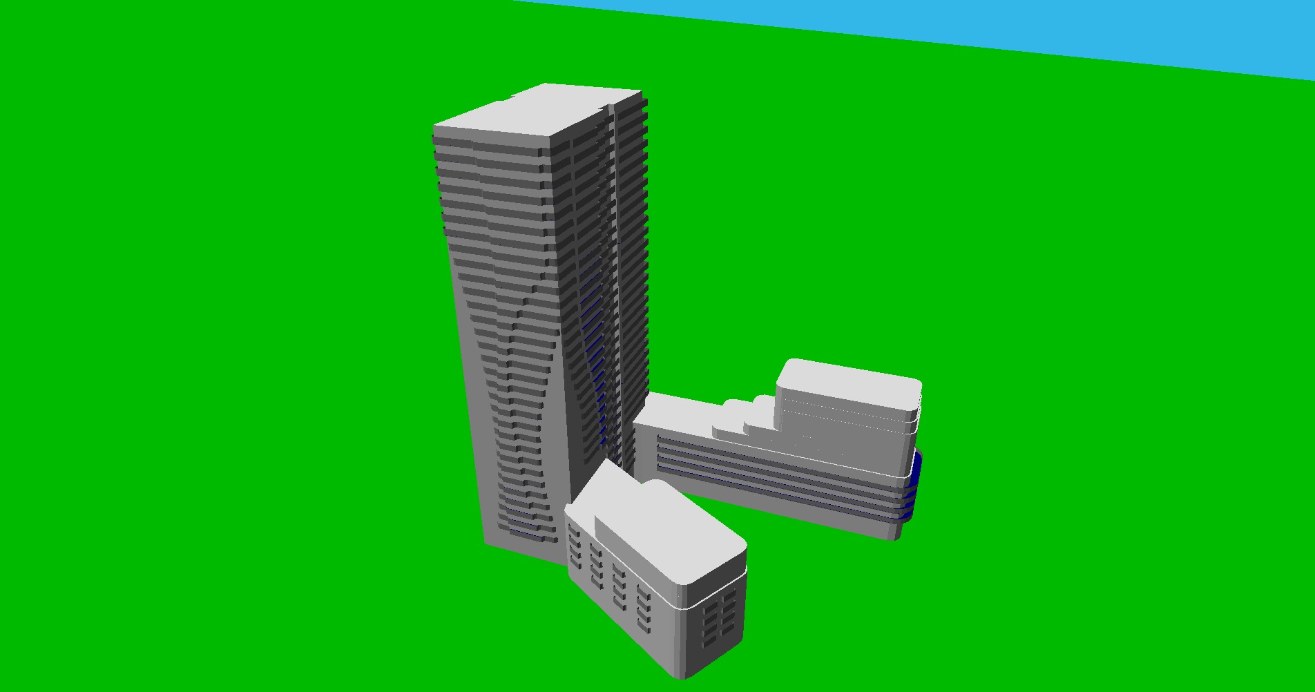 modernist exterior shot keep the colors place this building to the city enviroment add cars people make partly cloudy skies architecture