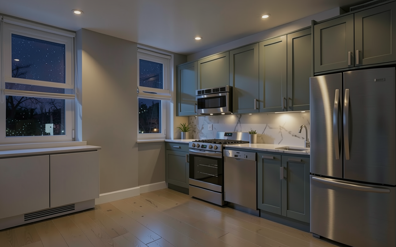 ultra photorealistic modern residential exterior with natural directional sunlight and soft tree shadows improve material realism with detailed stucco texture realistic brick and wood grain and natural vegetation variation enhance glass windows with clear transparent architectural glass realistic reflections and interior visibility add hdr daylight lighting global illumination natural contrast and depth architectural photography realism with sharp details and accurate materials keep the architecture proportions and design exactly the same