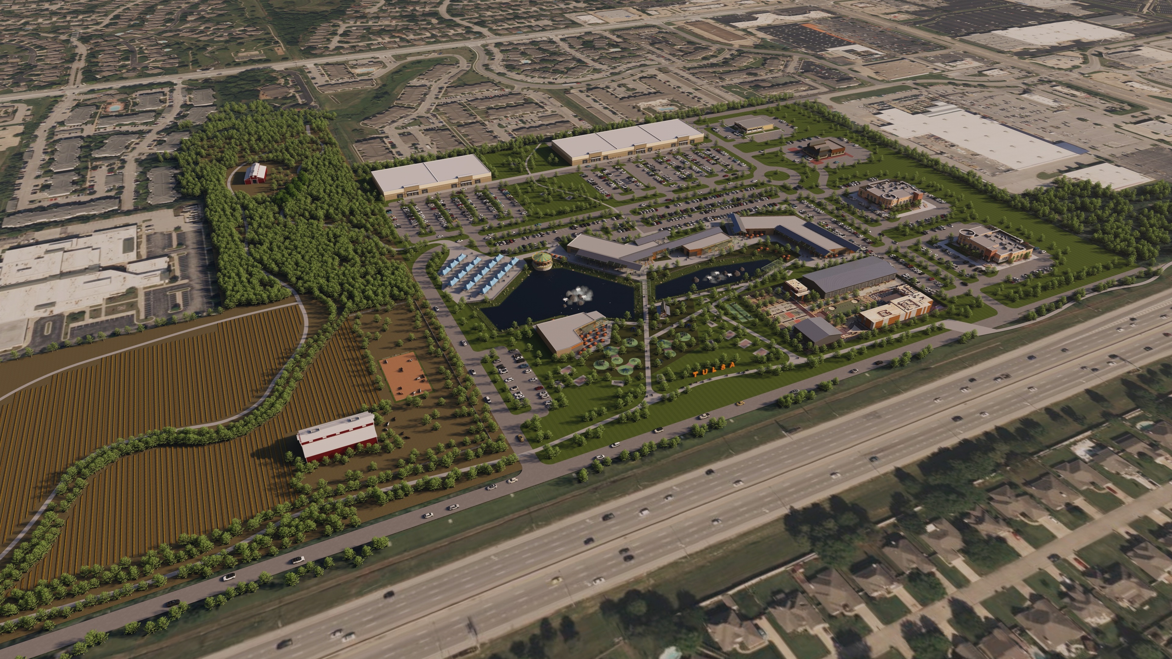 less sunlight flooding the image make it dusk with windows in shops glowing
