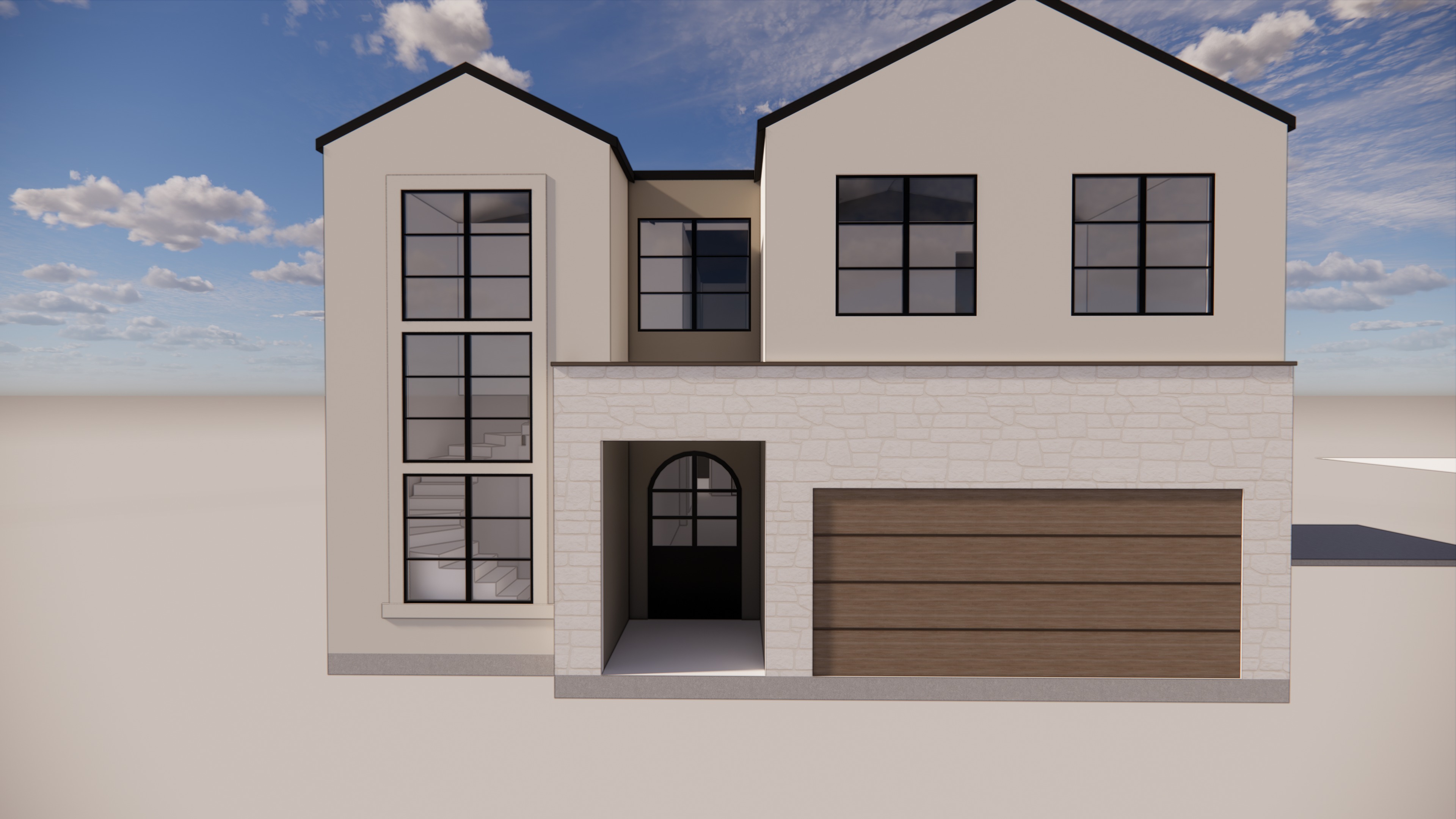 make this photo stand out add landscaping modern clean look also edit the stone to more earth tones and maybe like limestone