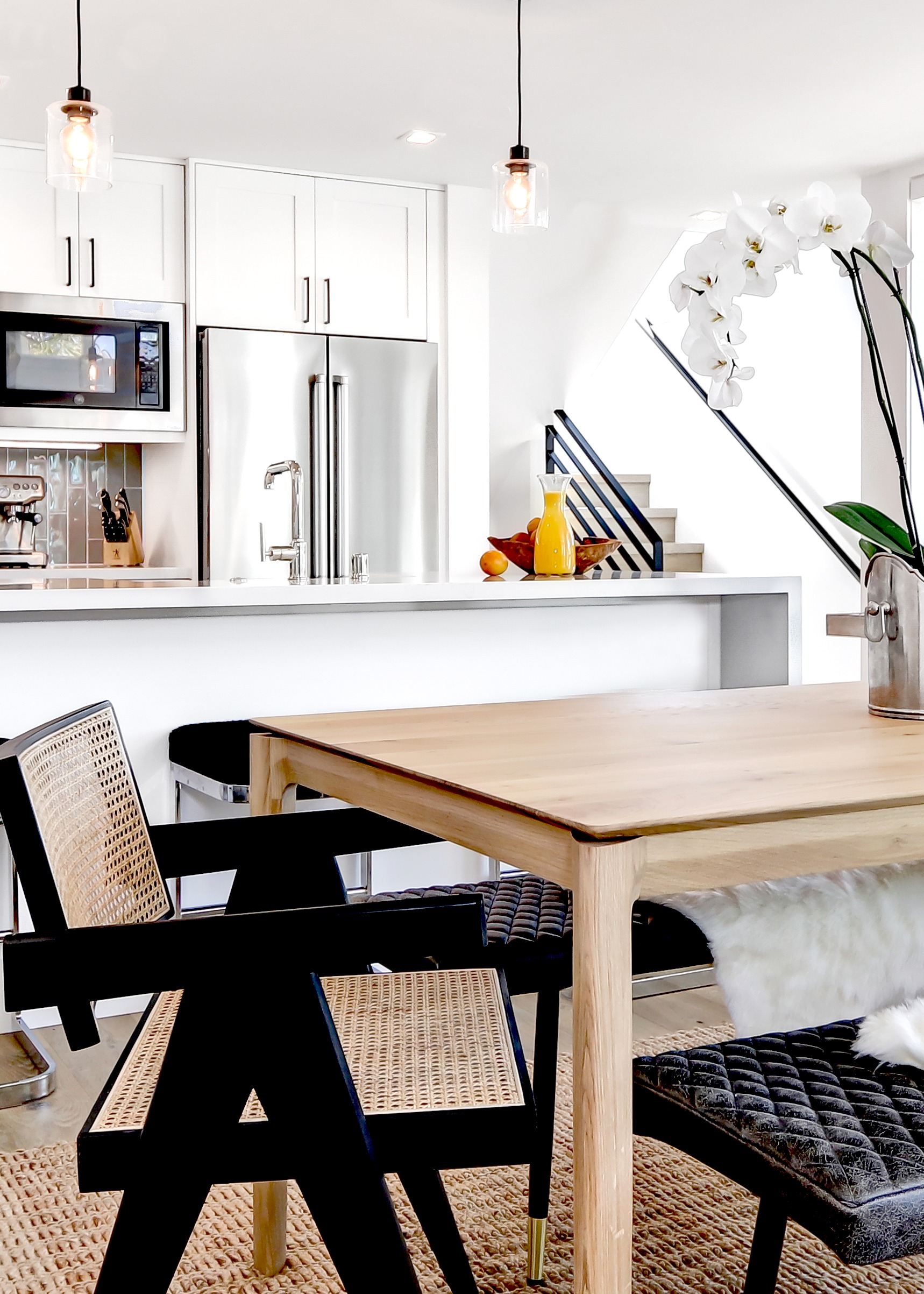 remove the oranges and orange juice carafe on the counter