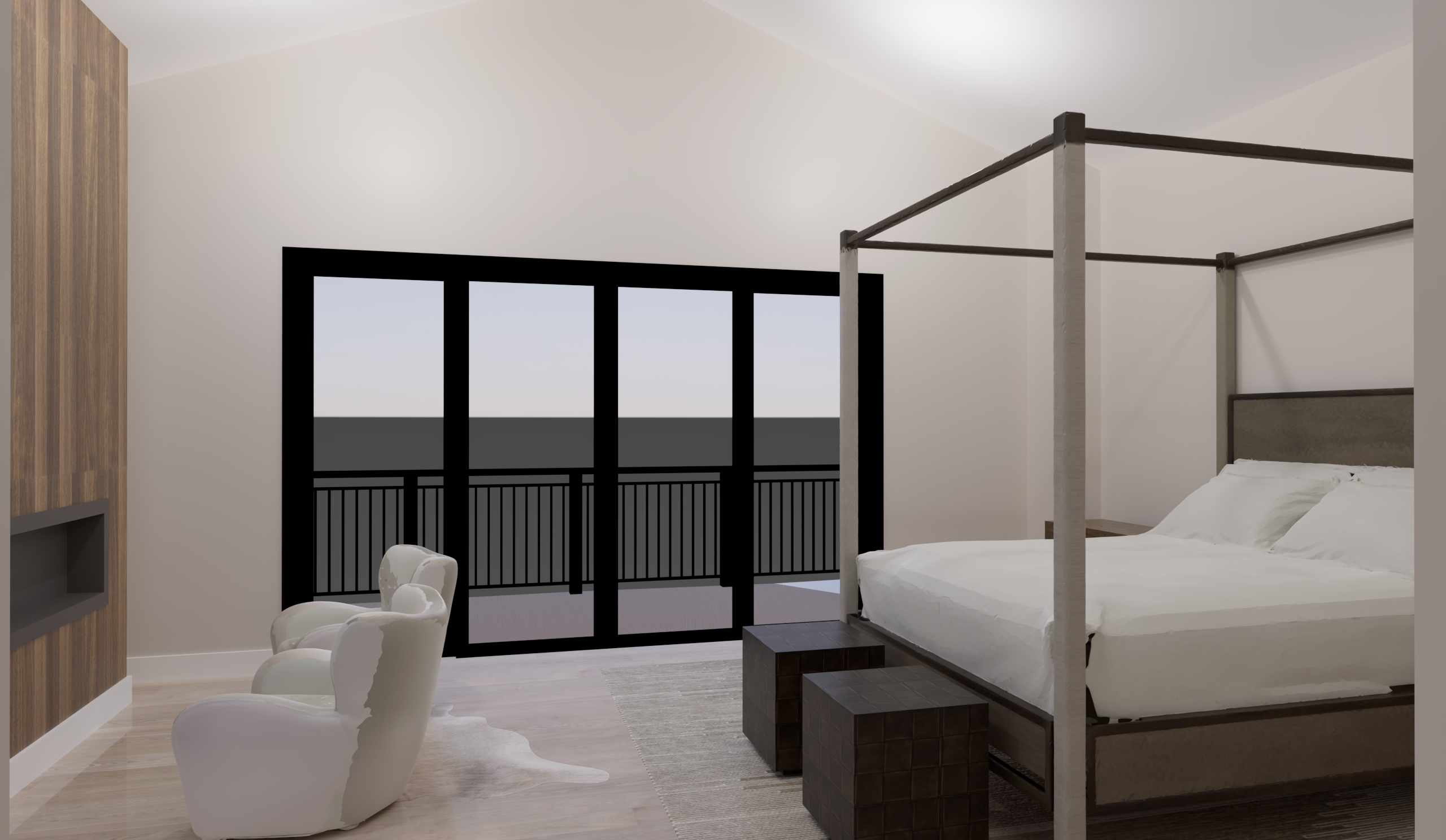 transform this incomplete interior rendering into a highly photorealistic image while strictly preserving the existing architecture room proportions window placement and fixed finishes through the windows create a realistic breckenridge colorado mountain view with alpine terrain evergreen trees and distant peaks the exterior lighting should feel natural and cohesive with the interior lighting conditions