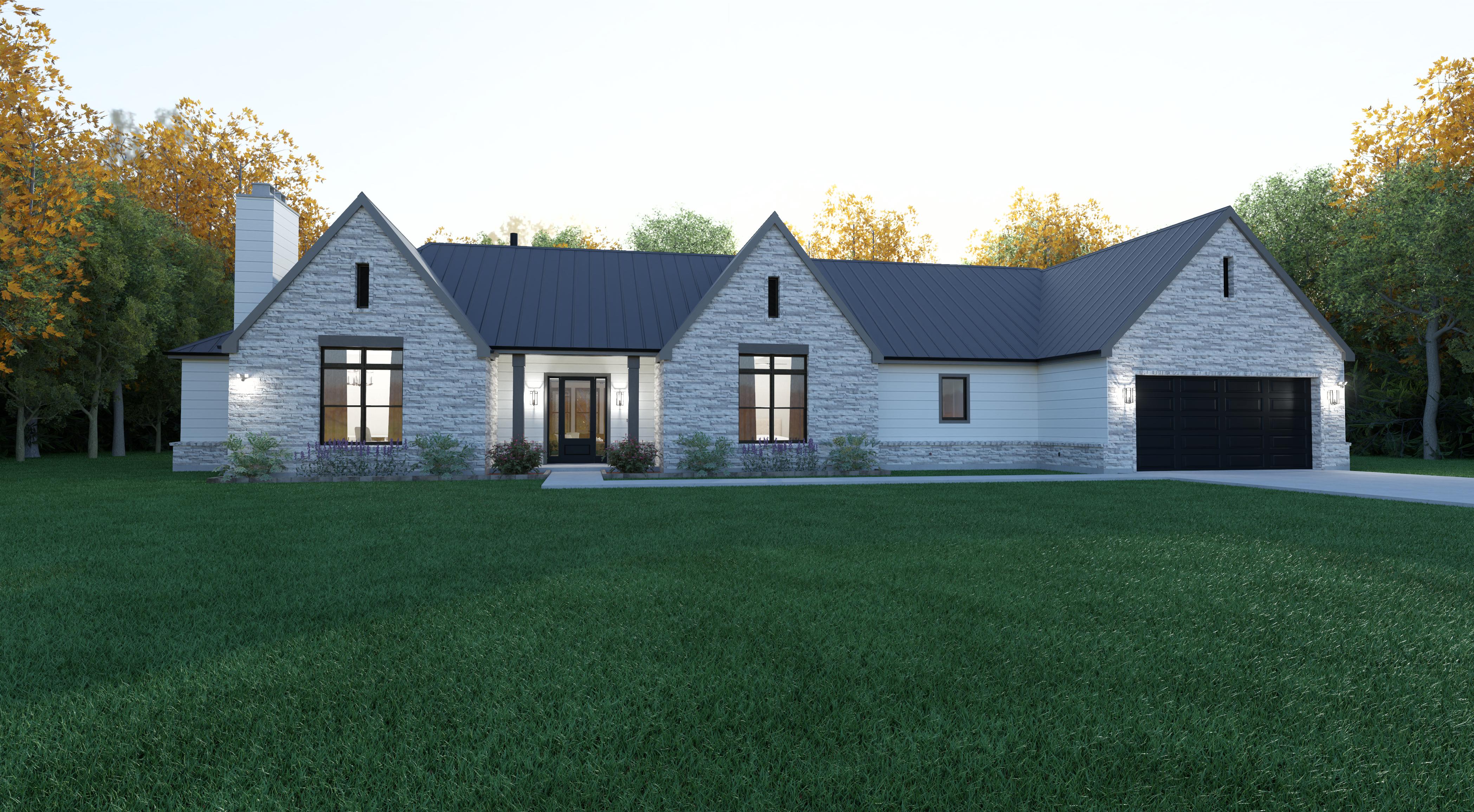 make this more realistic the lights are slightly visible in the windows it is dusk outside but still bright