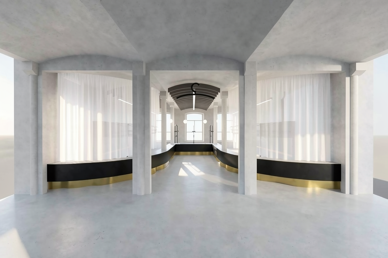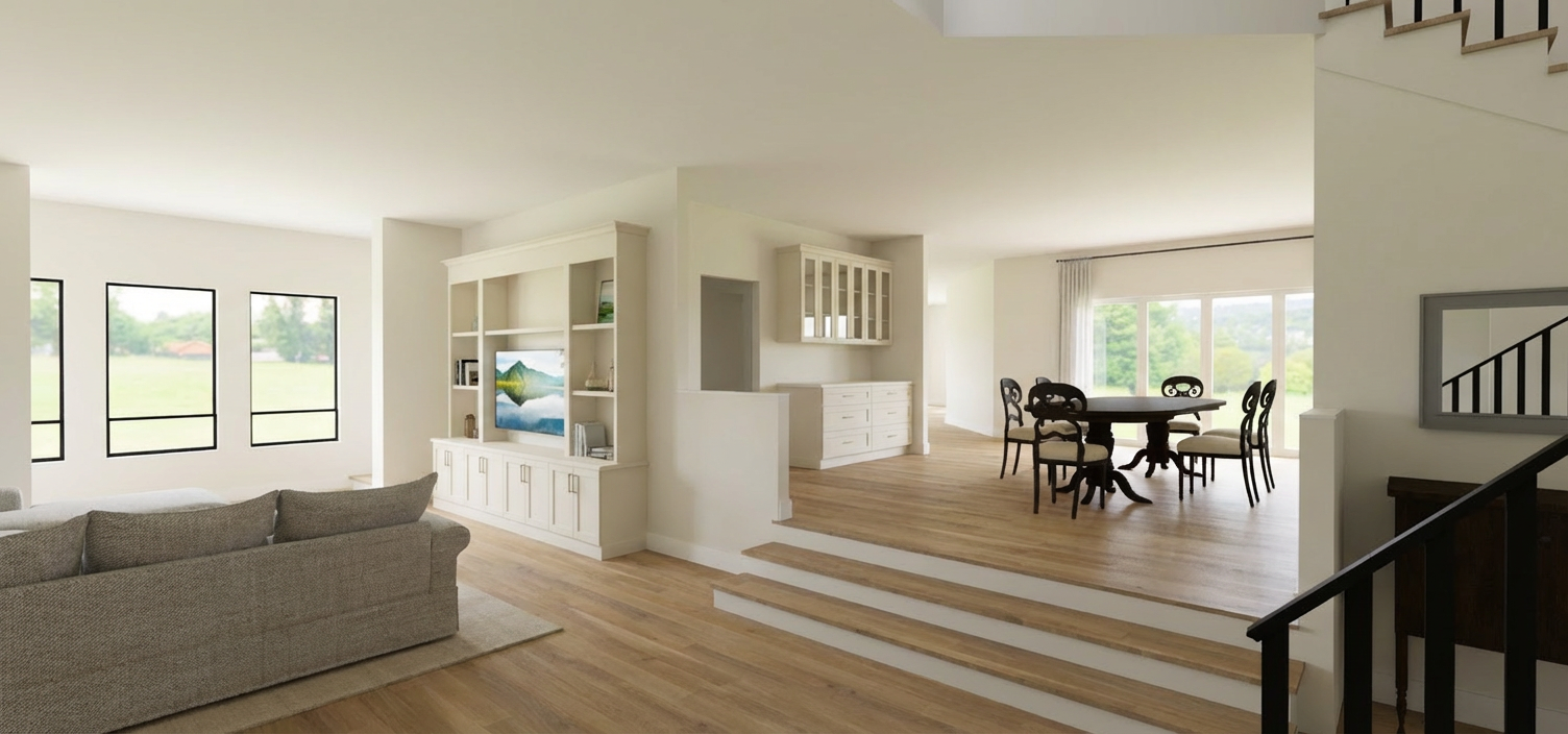 trictly maintain the defined camera view street level perspective looking uphill with the street in the foreground and the building set into the hillside do not change the camera angle framing or composition historic mount adams architecture visible further up the hill in the background controlled minimal landscaping around the building with neat shrubs and small trees not overgrown late afternoon golden hour lighting with warm sunlight and long soft shadows a vibrant sky with soft clouds in orange pink and light purple tones subtle atmospheric haze realistic environment cinematic but natural rendering fully lit and decorated interiors behind windows