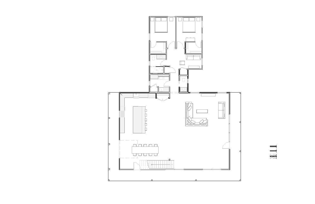 render a clean minimalist 2d architectural floor plan in a soft pastel color palette use thin crisp linework with warm beige and taupe tones for walls and subtle transparent fills for each room add modern simplified furniture icons with gentle curves and muted accent colors like soft orange and light brown include long directional soft shadows that extend outward giving the plan a calm illustrated depth use a warm off white background with no texture add small artistic elements such as a lightly textured tree illustration outside the plan maintain a clean modern elegant aesthetic with smooth shapes flat colors and a light scandinavian design influence