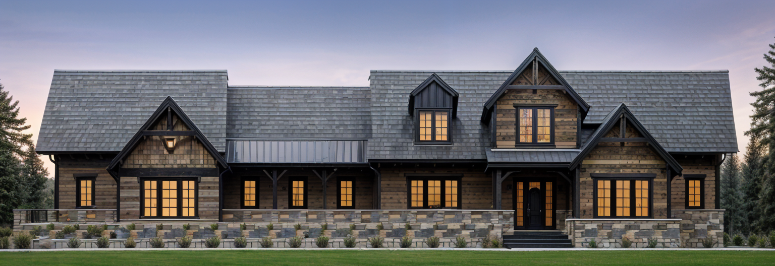 modernist exterior shot dark exterior colors with wood beams in front architecture