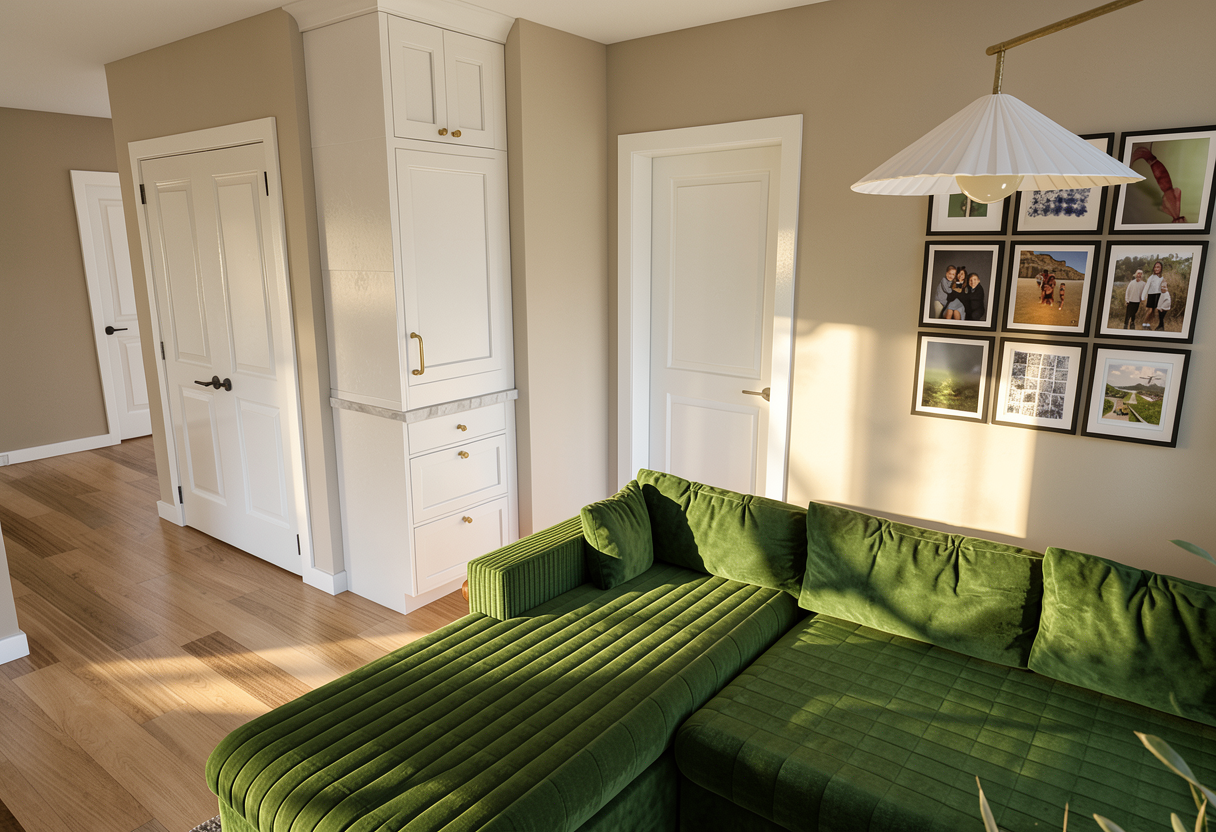 change exterior paint to deep dark navy blue add lots of windows in the vault paint garage door orange add curb appeal