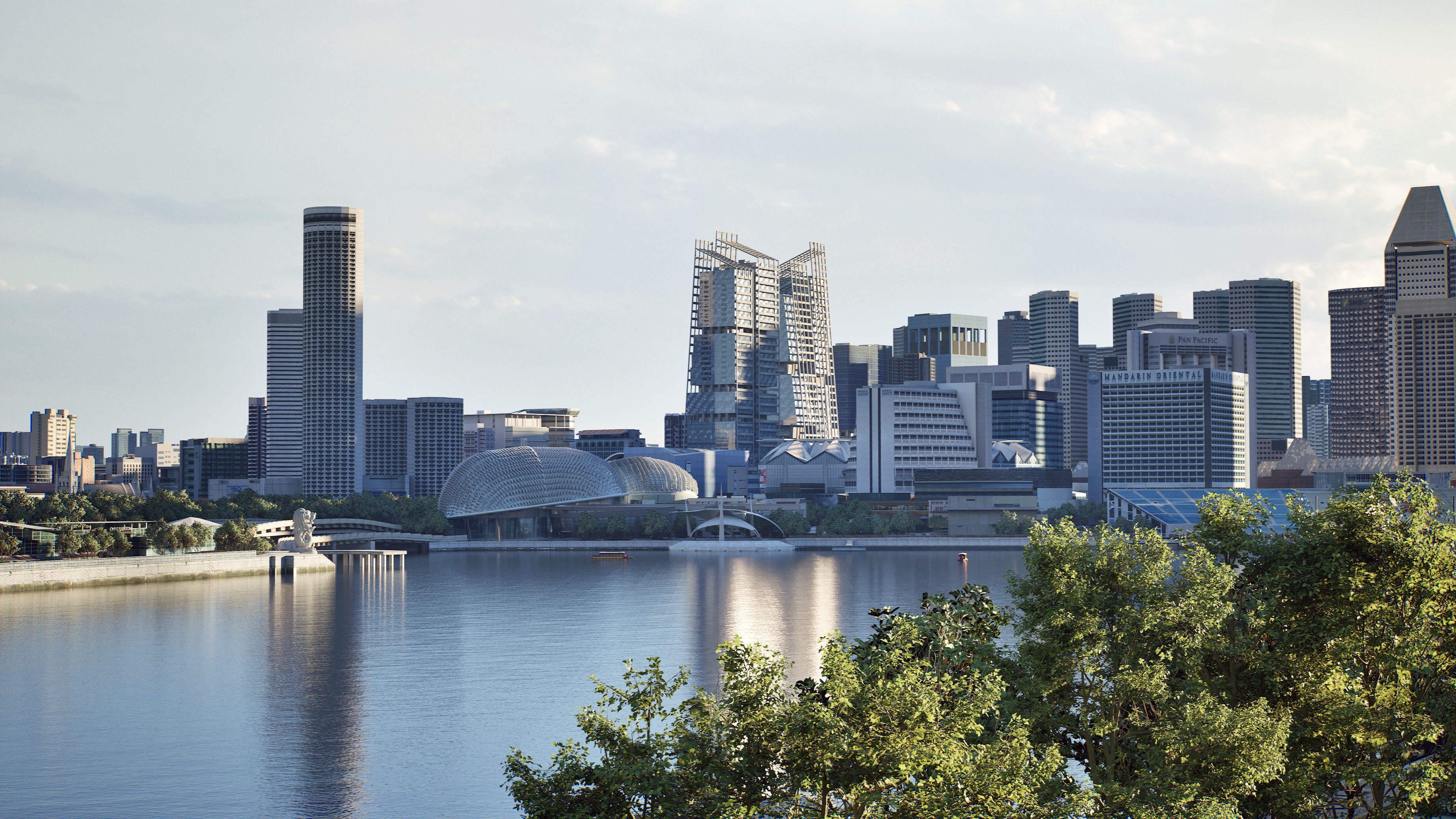 singapore cbd scene retain input image composition improve global illumination photorealistic improve water body