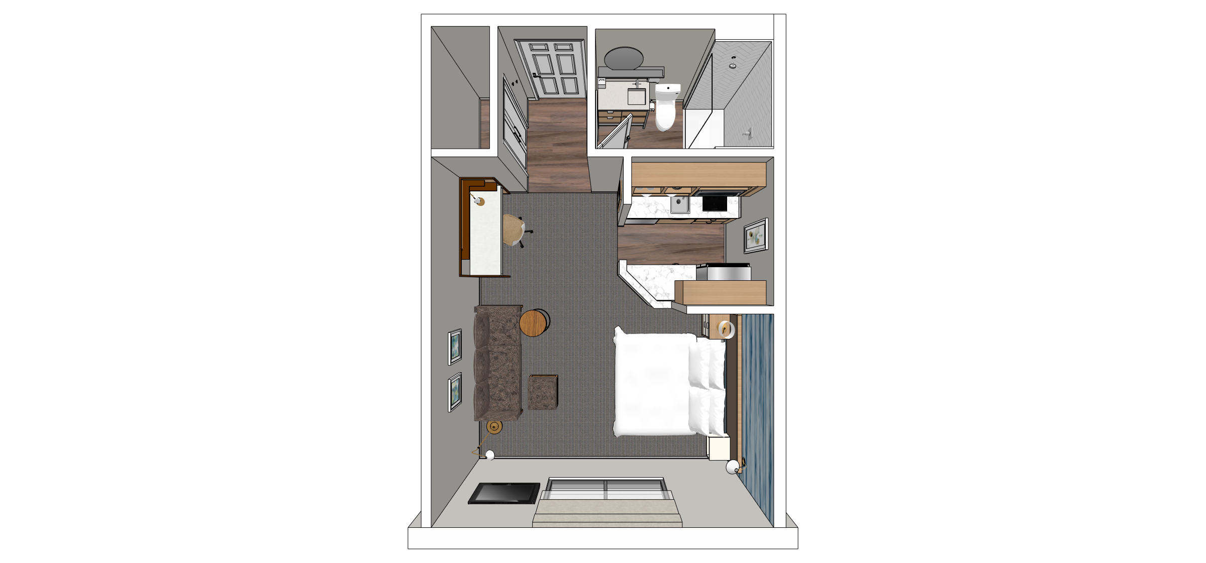 do not alter materials or colors create interior photorealistic rendering soft lighting and soft shadows
