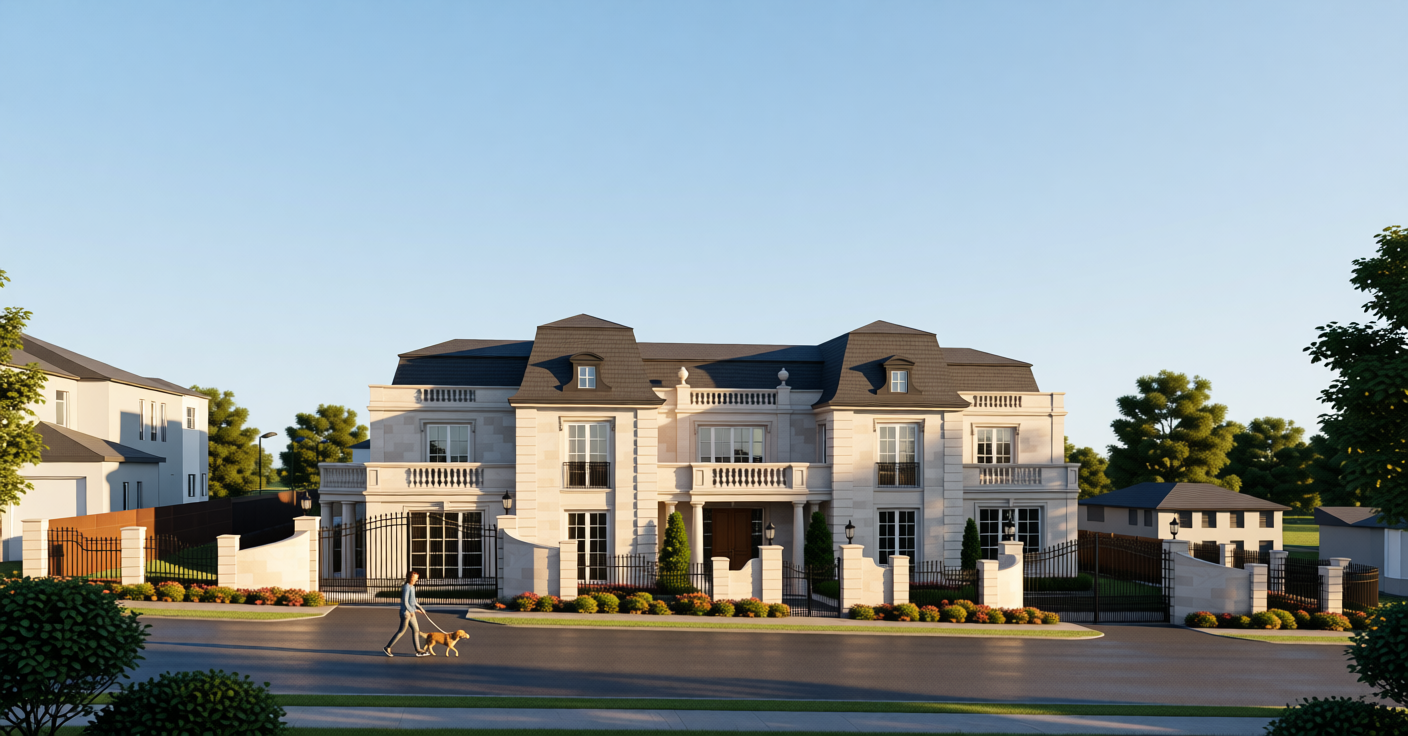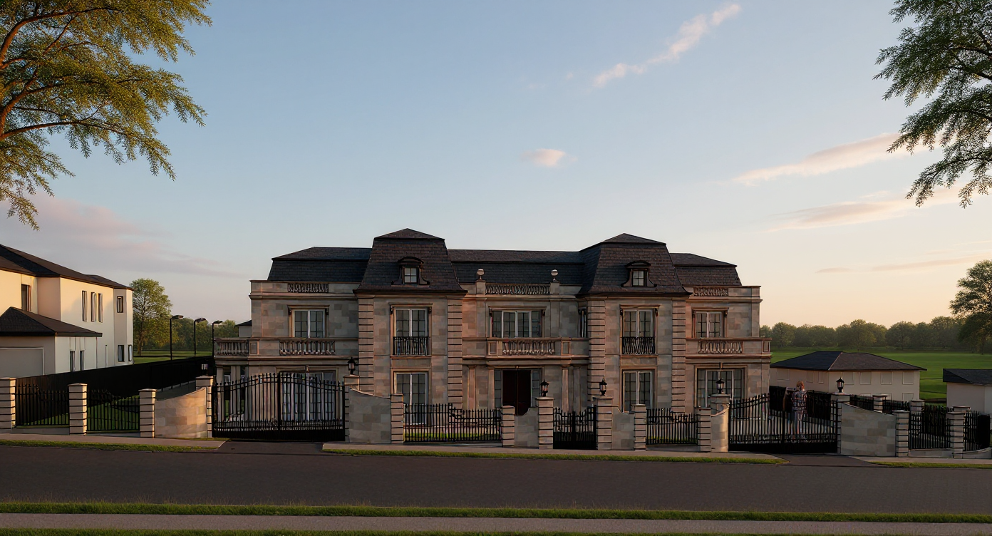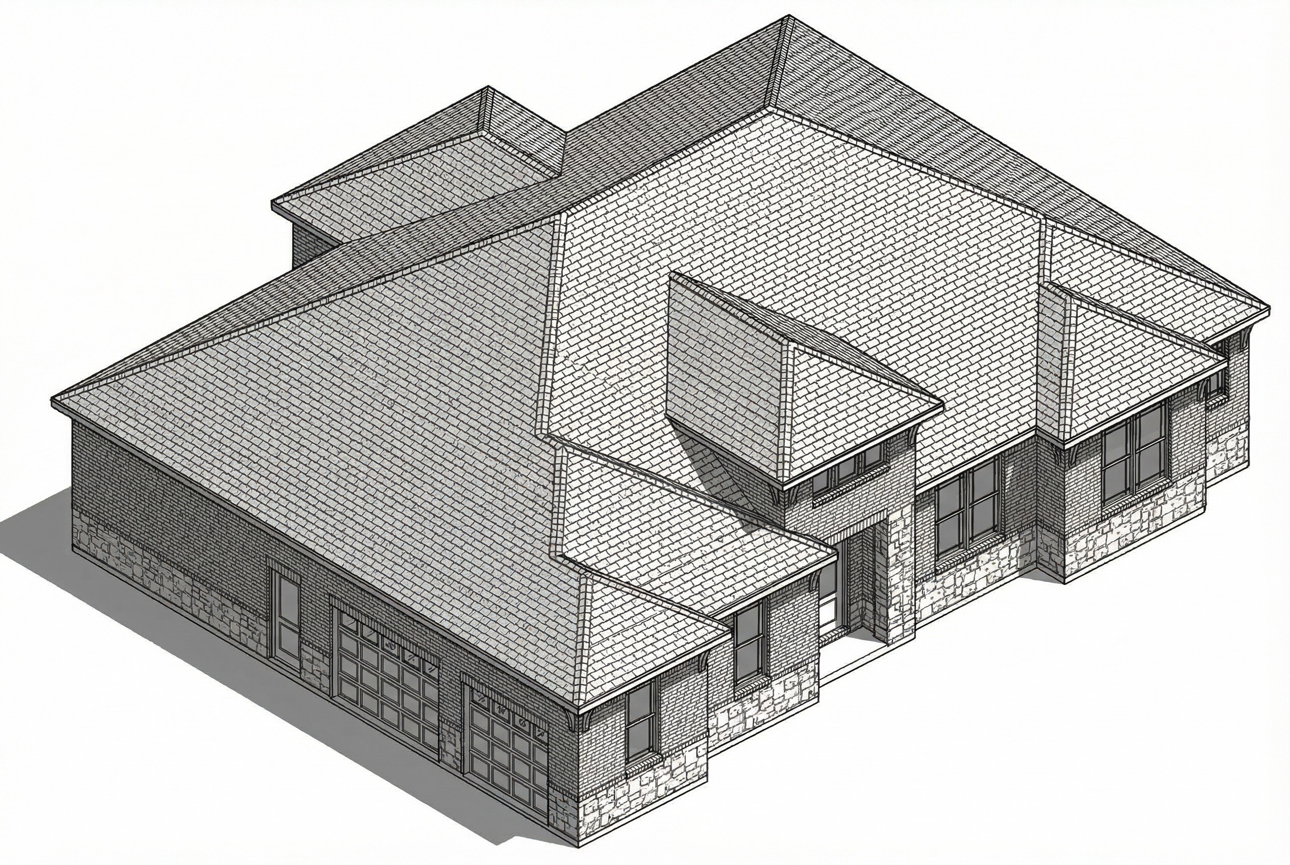 make a 3d realistic image of a home on a lot with landscaping that doesn t block the driveway use the colors in the referenced image keep the sideload garage where it is