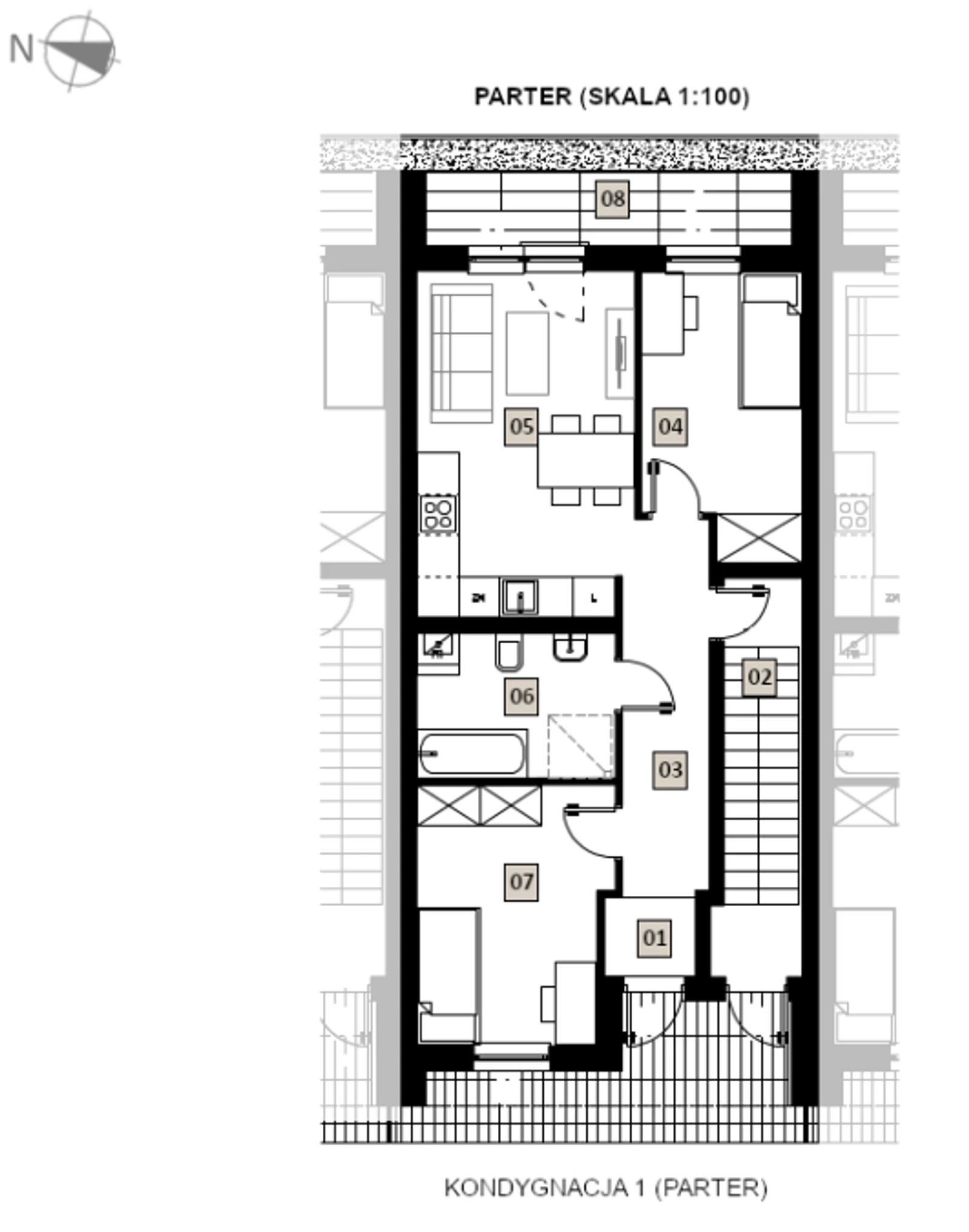 render a detailed and cozy modern apartment floor plan the walls are painted in soft cream creating a warm and inviting atmosphere use natural wood tones for the flooring to add warmth and earthiness the living area has a comfortable gray sectional sofa paired with a dark wood coffee table the kitchen features sleek white cabinets with stainless steel appliances and gray granite countertops in the bathroom incorporate light blue tiles for a refreshing feel bedrooms have soft beige walls with dark wood accents exuding a calm and serene ambiance use warm ambient lighting throughout to enhance the cozy atmosphere