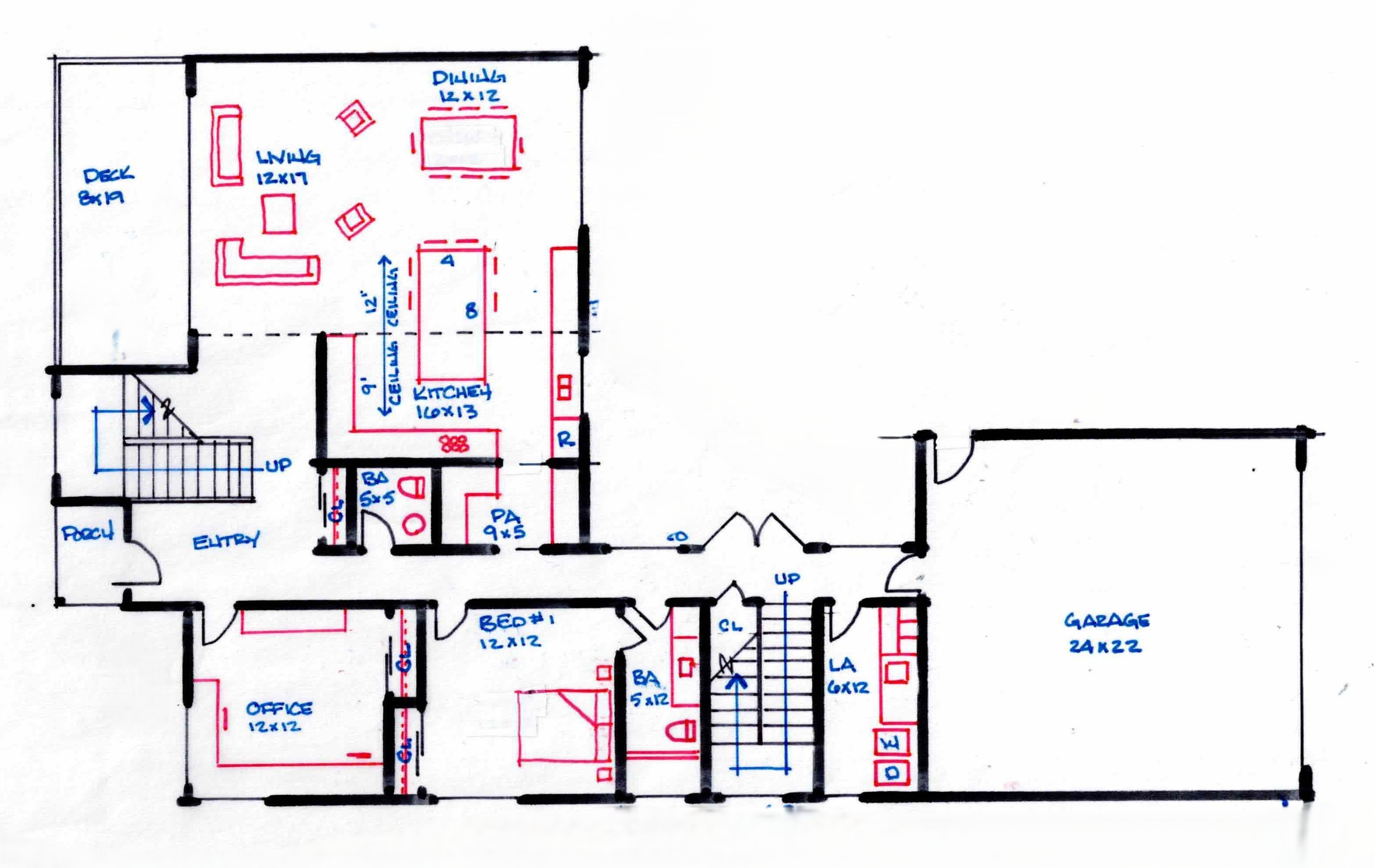 convert this floor plan into a realistic isometric 3d view of a full house show the space from an elevated angle with furniture walls and details visible simple elegant furniture with no clutter use the same furniture as shows on the plan do not change the orientation of the floorplan