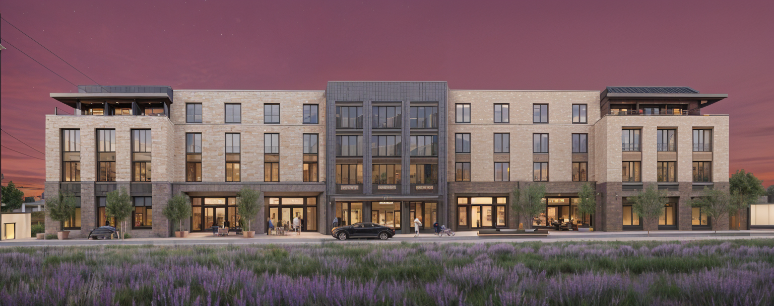 a industrial hotel in fort worth texas plaster and stone walls steel framed windows strong geometric forms rooftop terraces with greenery symmetrical fa ade and dramatic nighttime architectural lighting western traditional design architecture