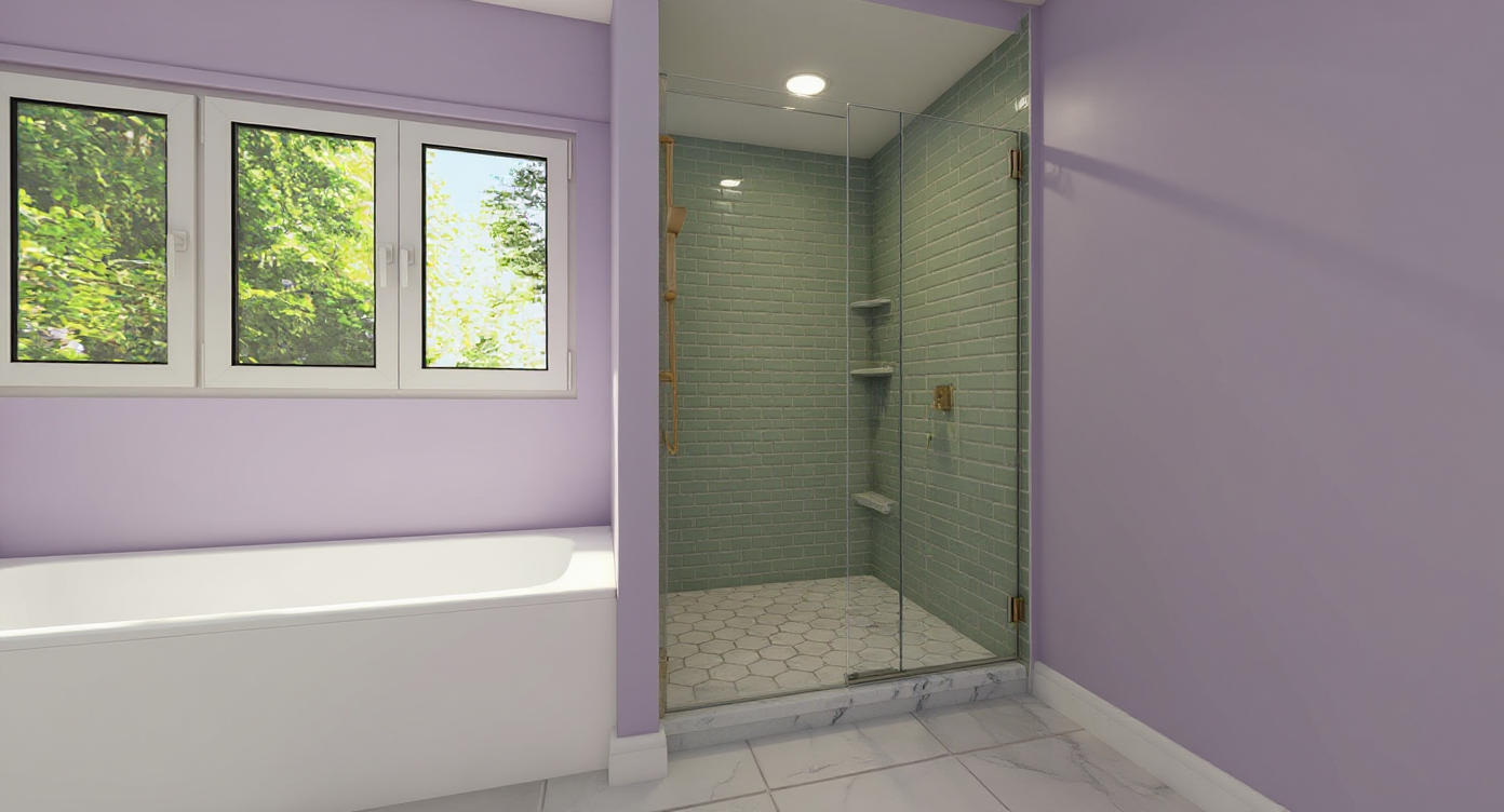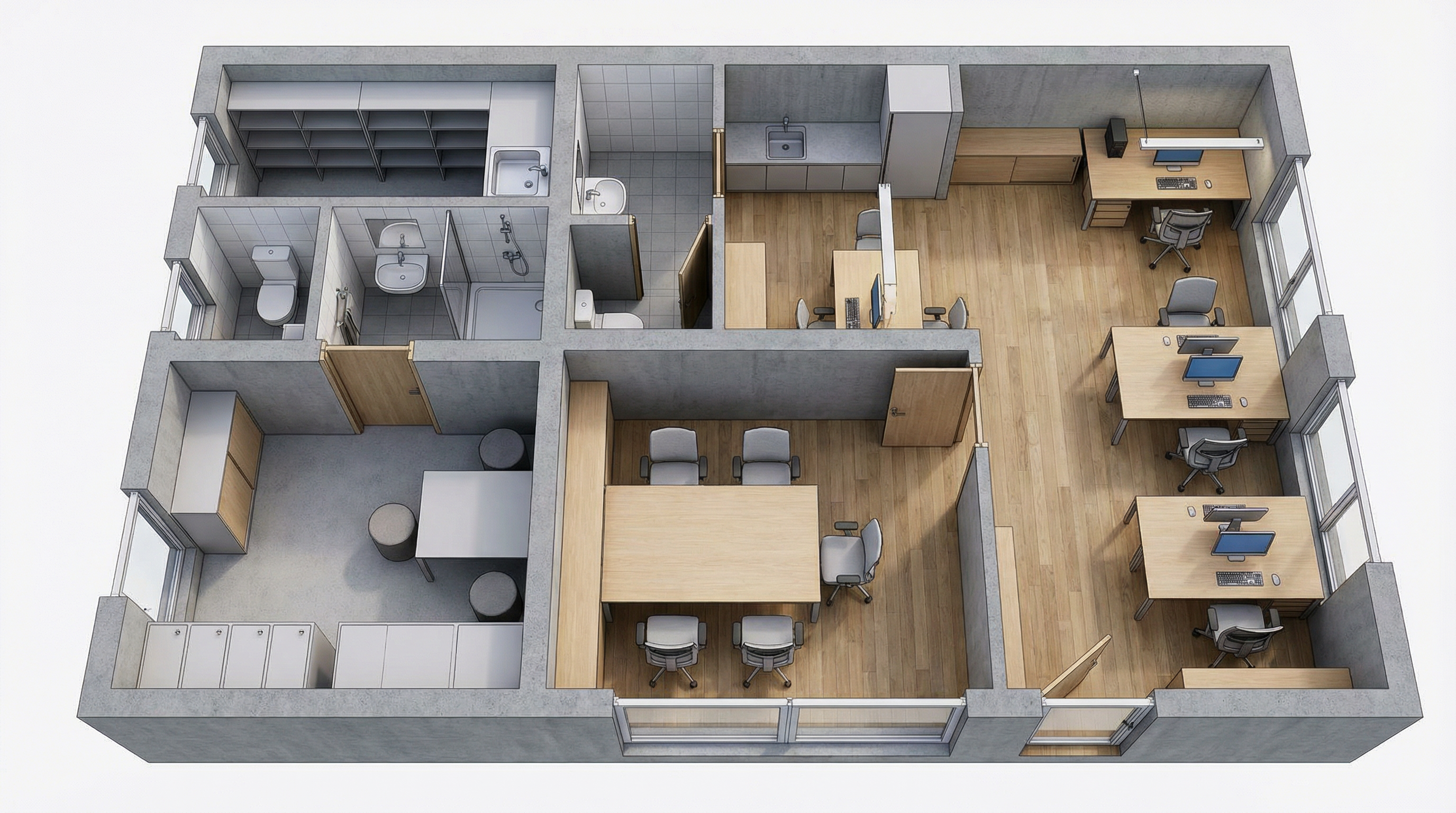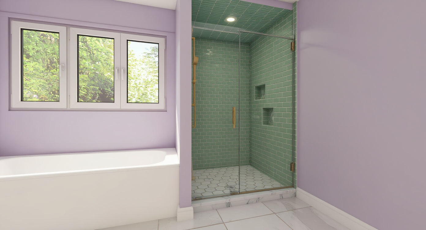 single storey contemporary suburban house facade low pitched dark charcoal tiled hip roof crisp white rendered walls recessed entry porch with square columns one a prominent narrow stone clad feature column and the other a dark grey column elegant dark brown timber cladding as a classy feature at the highest part of the recessed entry portico full height glass entry door with timber frame wide double garage with smooth white panel door minimalist front porch with floating white platform steps neatly trimmed low hedges and layered shrubs in a narrow garden bed bordered by dark mulch manicured bright green lawn black metal side fences clean concrete driveway warm sunset lighting with golden tones and soft long shadows photographed from street level high resolution realistic architectural visualization