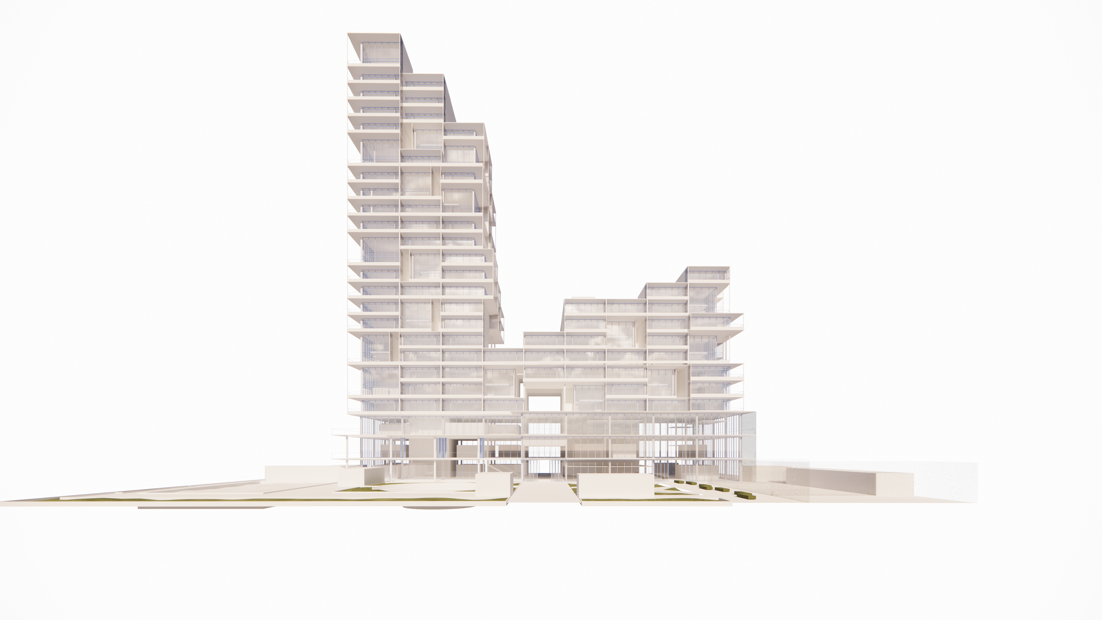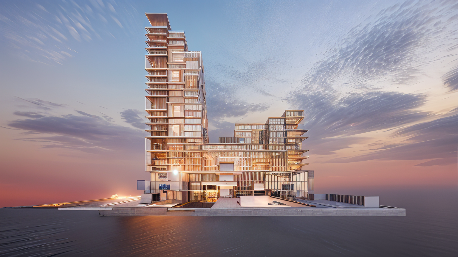 exterior shot modify the facade only do not change the 3d volume structure or spatial composition of the project add either moucharabieh screens or contemporary brise soleil as architectural elements these should be elegantly integrated into the existing fa ade enhancing its character while providing passive sun shading emphasize a high end photorealistic rendering with detailed materials accurate lighting and architectural refinement keep the overall project identity intact this is strictly a fa ade treatment exercise not a redesign