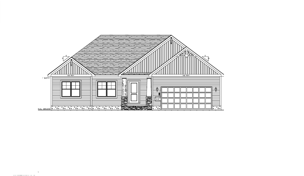 make as photorealistic as possible while keeping textures the same as selection professional landscaping in a lightly wooded scene with good lighting white siding black shingle roof black windows to match plan black front door