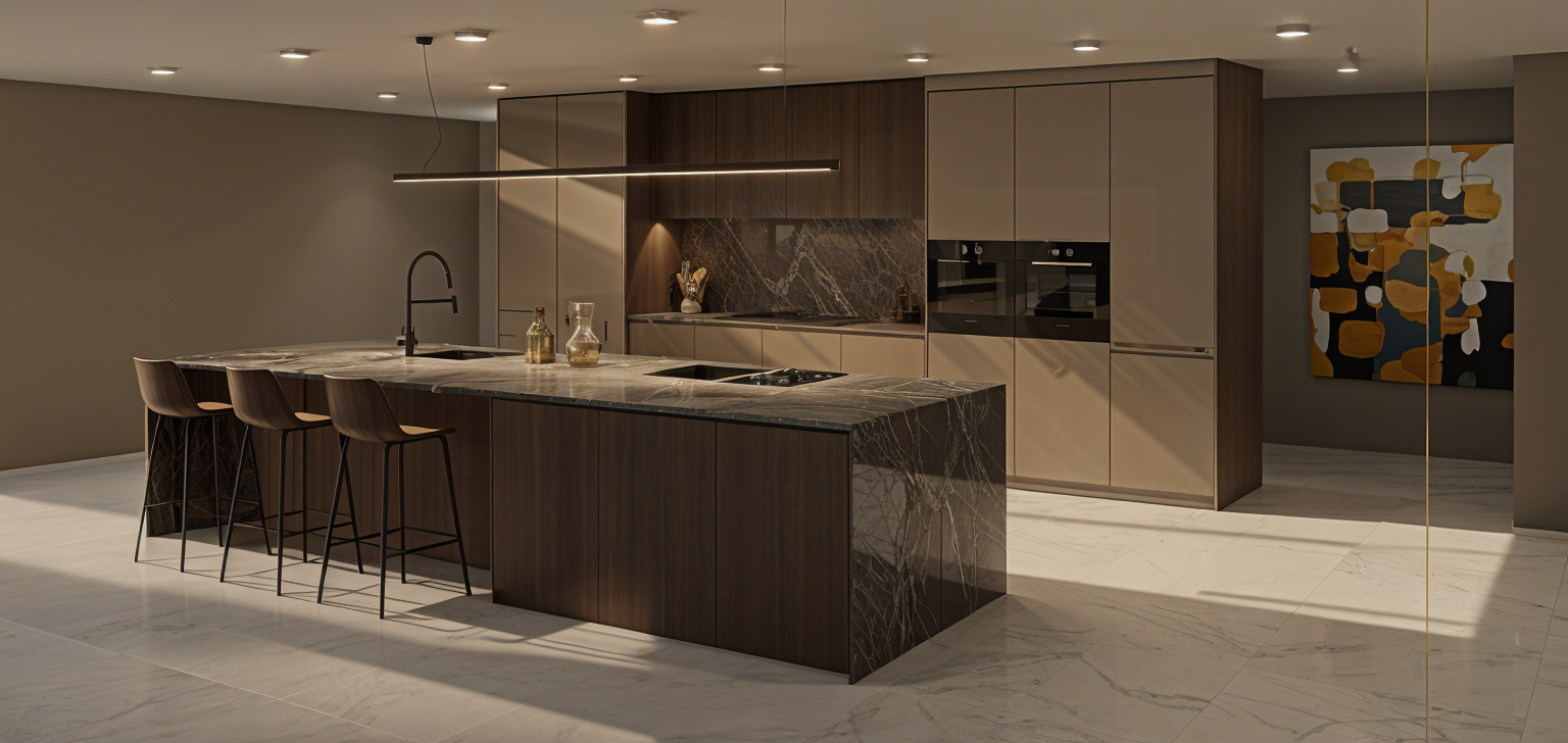 change the stone fro the island and backcomposition to emperador dark marble