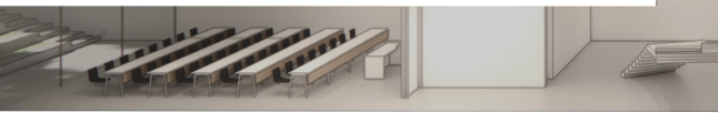 please add some white silhouette people sitting on the chairs within this classroom