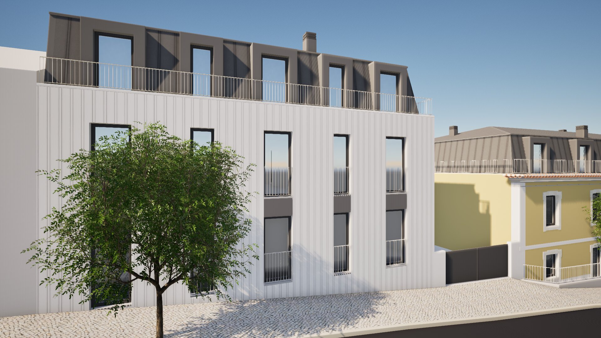 faz imagem hiper realista coloca um c u de ver o tirar o brilho do asfalto a fachada amarela passa a caf com leite
