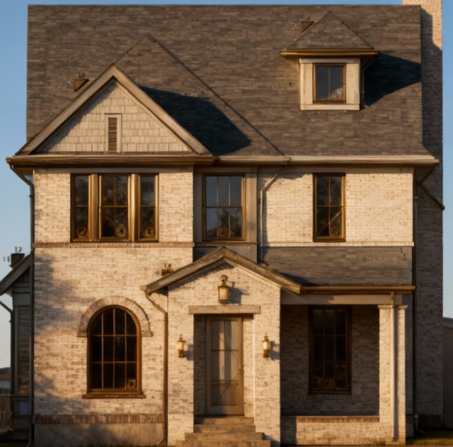 can you take this image and change the brick color to red and the roof to black