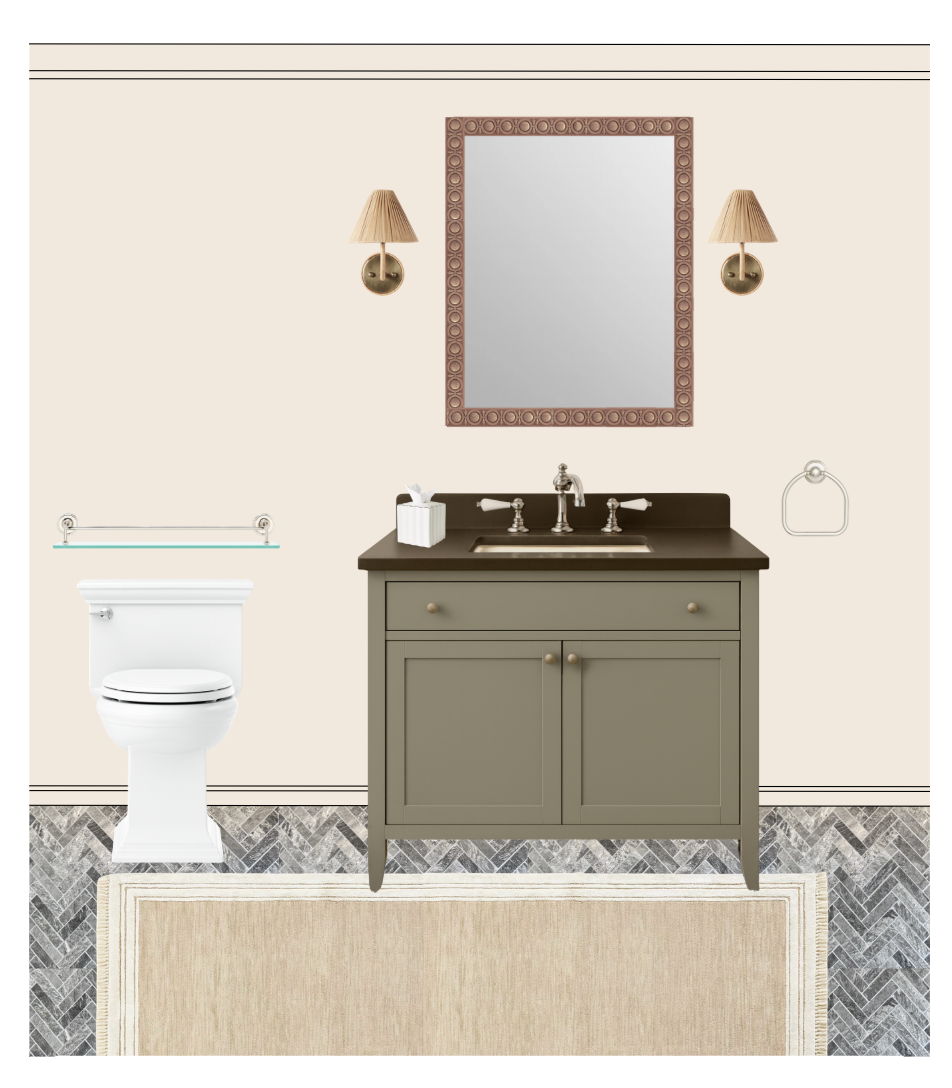 interior shot it s a glass shelf above the toilet change hardware to polished nickel