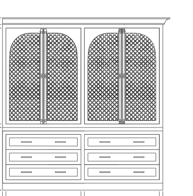 interior shot create the built in rendering white cabinets and gold mashed on the door