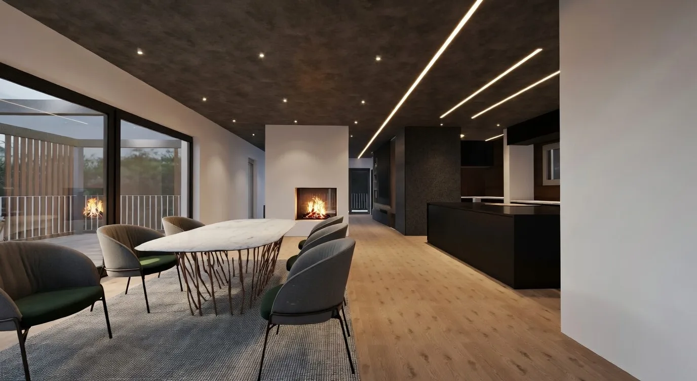 match lighting and mood of a bright modern bedroom with natural daylight soft diffused daylight balanced exposure no harsh contrast no dramatic shadows bright but soft interior lighting realistic daylight entering through windows neutral and warm tones clean architectural photography style consistent material palette warm smoked oak wood soft concrete textures natural colors no dark or moody atmosphere high end interior photography minimalistic and calm evenly lit space no strong artificial lighting no overexposed highlights match lighting across all images same brightness and tone as reference bedroom image soft shadows realistic exposure architectural photography natural daylight realism