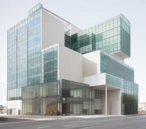 alvar aalto exterior shot street view building warm building lights soft colors urban tall buildings background sunny day landscape people cars architecture