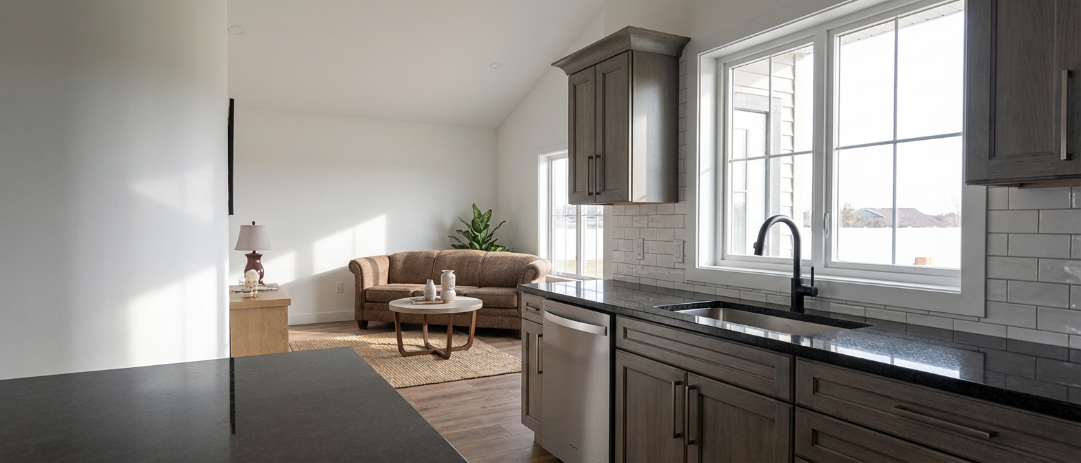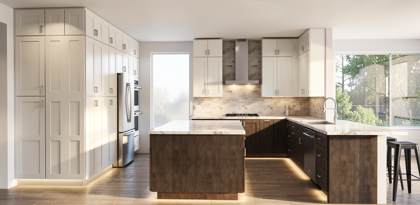 change the countertops to light coloured marble change the cabinet pulls to brass change island to wood grain change the appliances to brushed stainless change kitchen faucet and bar stools to brass